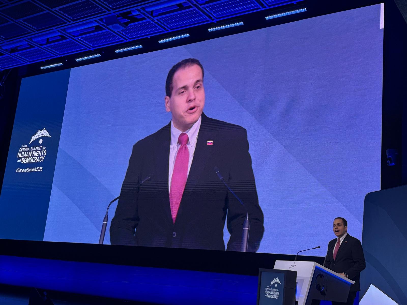El coordinador de Asuntos Internacionales de María Corina Machado y del Comando con Vzla, Pedro Urruchurtu, participó en la Geneva Summit 2026, donde denunció la represión del régimen venezolano, relató su experiencia como asilado en la Embajada de Argentina en Caracas y reiteró el llamado a la liberación total e incondicional de los presos políticos en Venezuela, ya que “nunca eres verdaderamente libre hasta que tu país es libre.