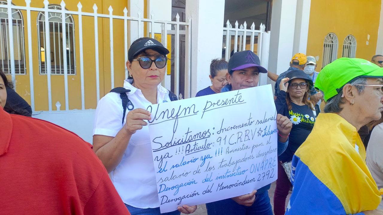 Por su parte, Carmen García, docente de Punto Fijo con 15 años de servicio, especialidad y maestría, denunció que su sueldo es de apenas 400 bolívares quincenales. «¿Qué hago yo con esa cifra? A eso se suma el abuso de los directivos y las exigencias del Ministerio de Educación. Vemos cómo los docentes están ahogados. Exigen y exigen, pero no dan nada. La infraestructura de los colegios es horrible y no tenemos insumos; aún así, piden sacar el trabajo como sea y en todo momento».