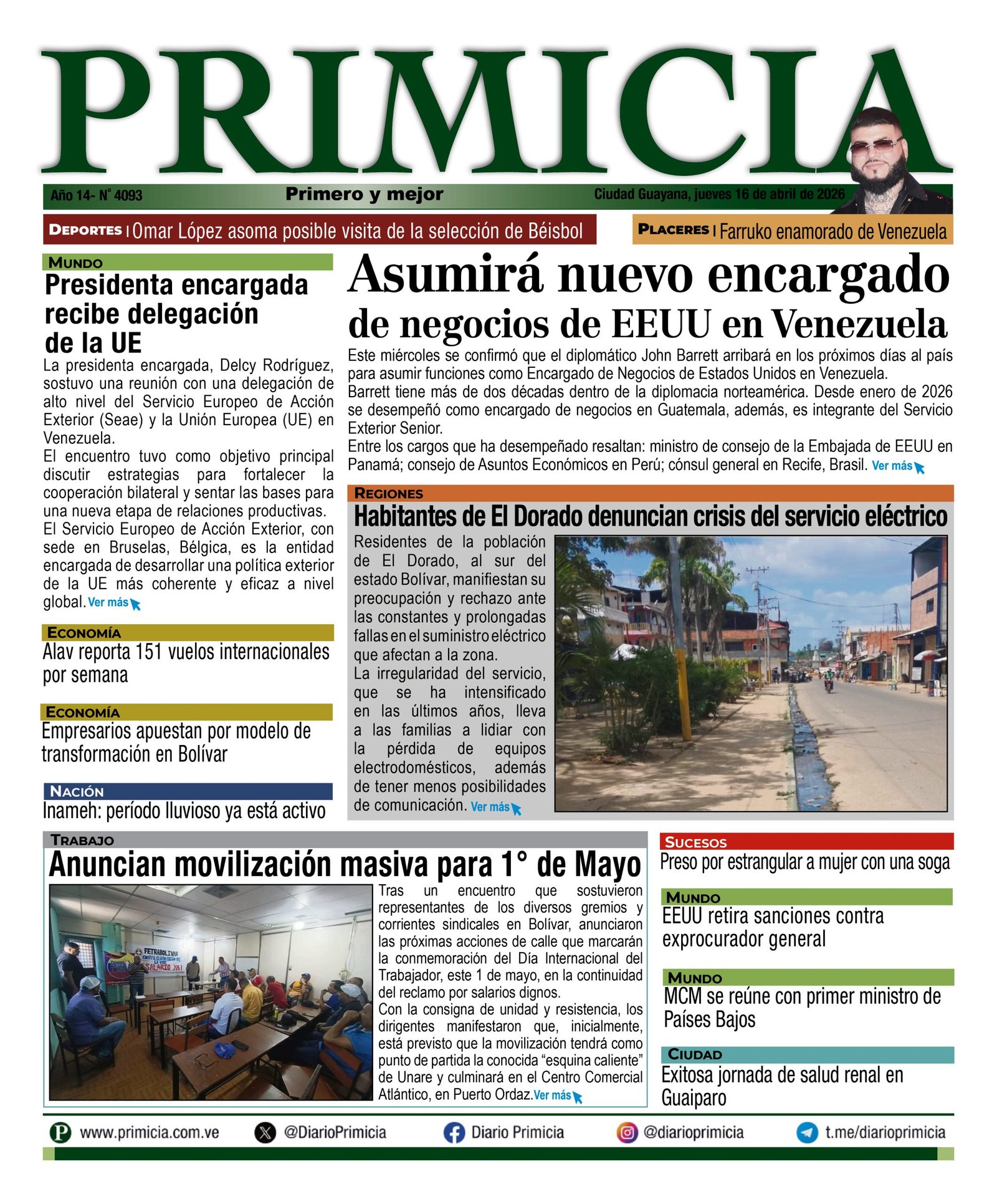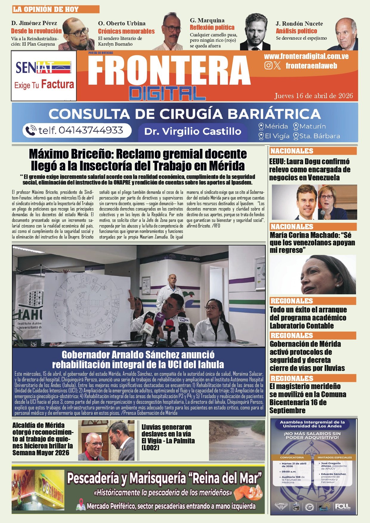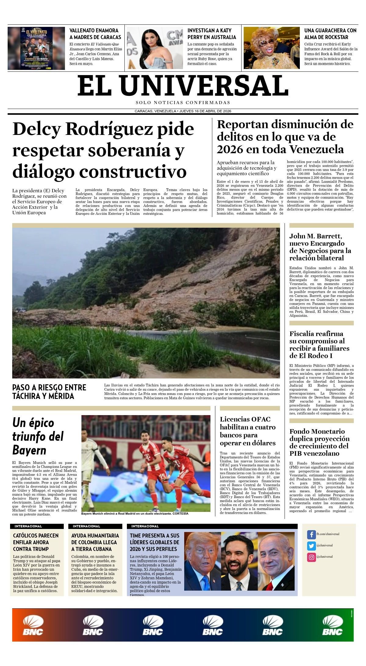 PortadasPortadas de este jueves 16 de abril de 2026 Por VenezuelanTimeabril 16, 202603 La noticia no descansa y nosotros tampoco ¡Únete a nuestro Centro Informativo en WhatsApp!