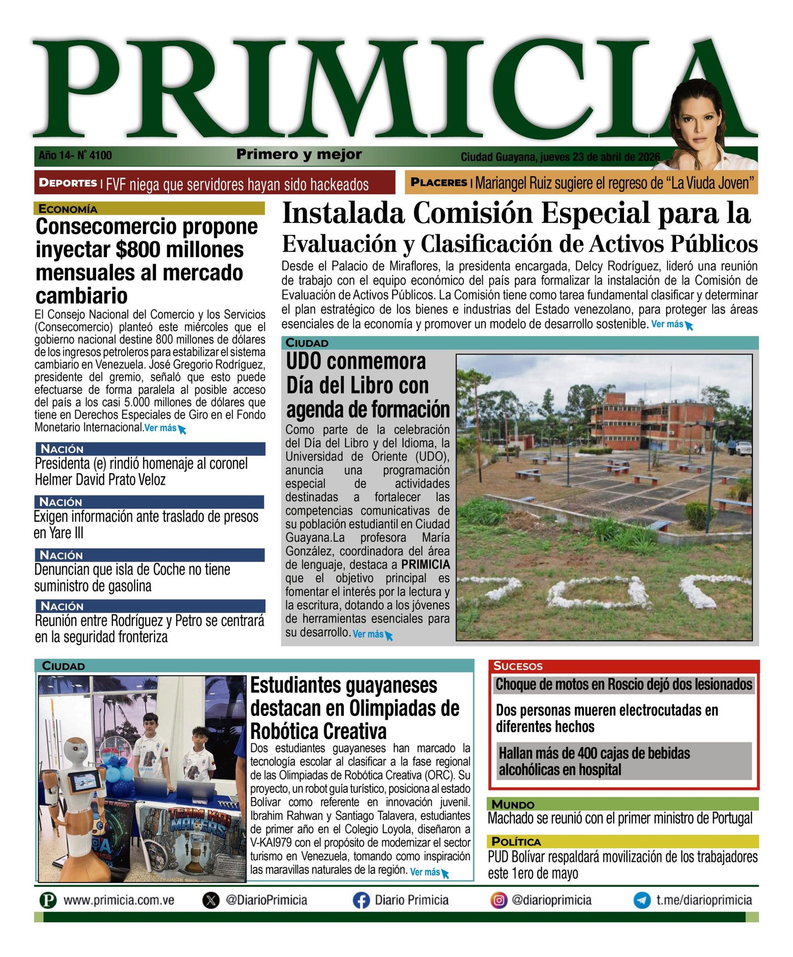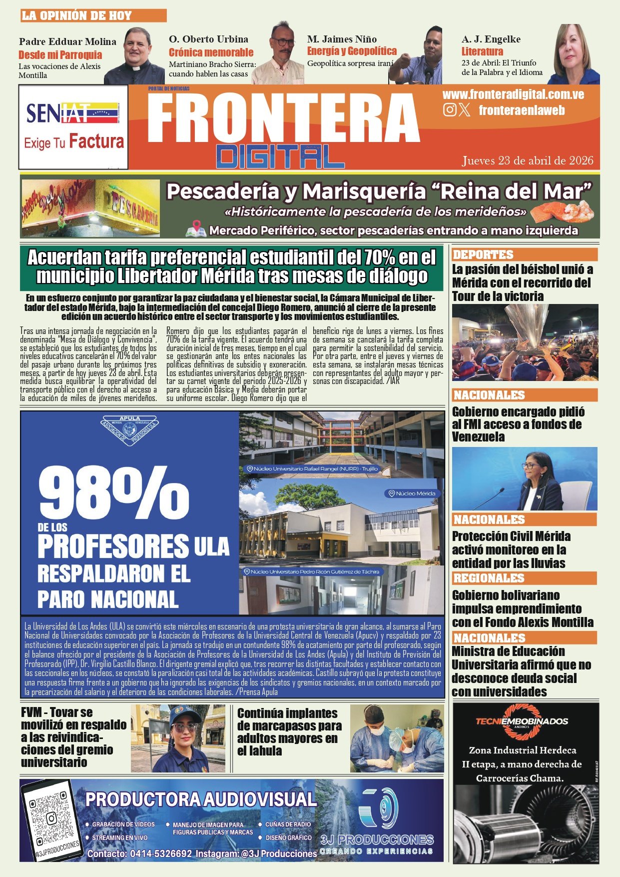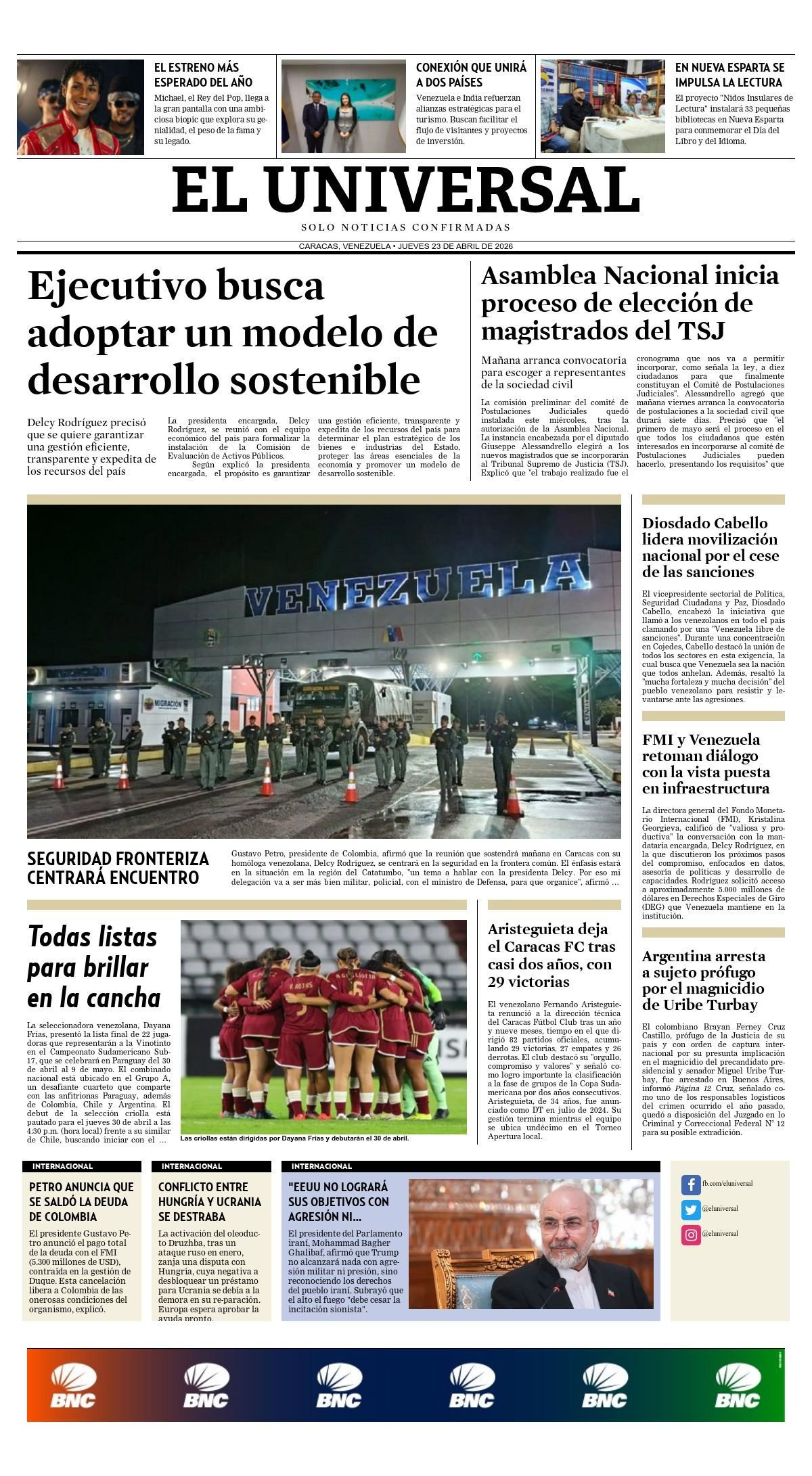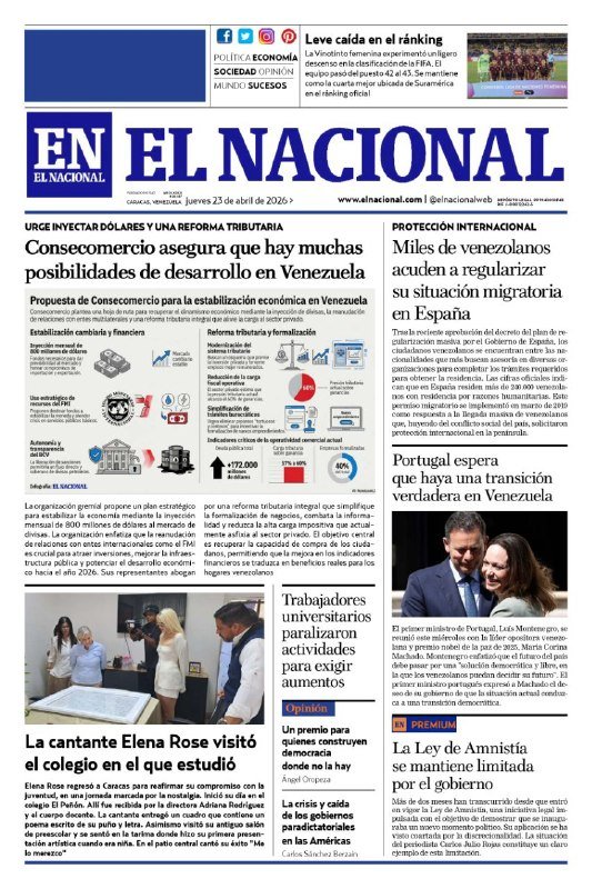 PortadasPortadas de este jueves 23 de abril de 2026 Por VenezuelanTimeabril 23, 202604 La noticia no descansa y nosotros tampoco ¡Únete a nuestro Centro Informativo en WhatsApp!