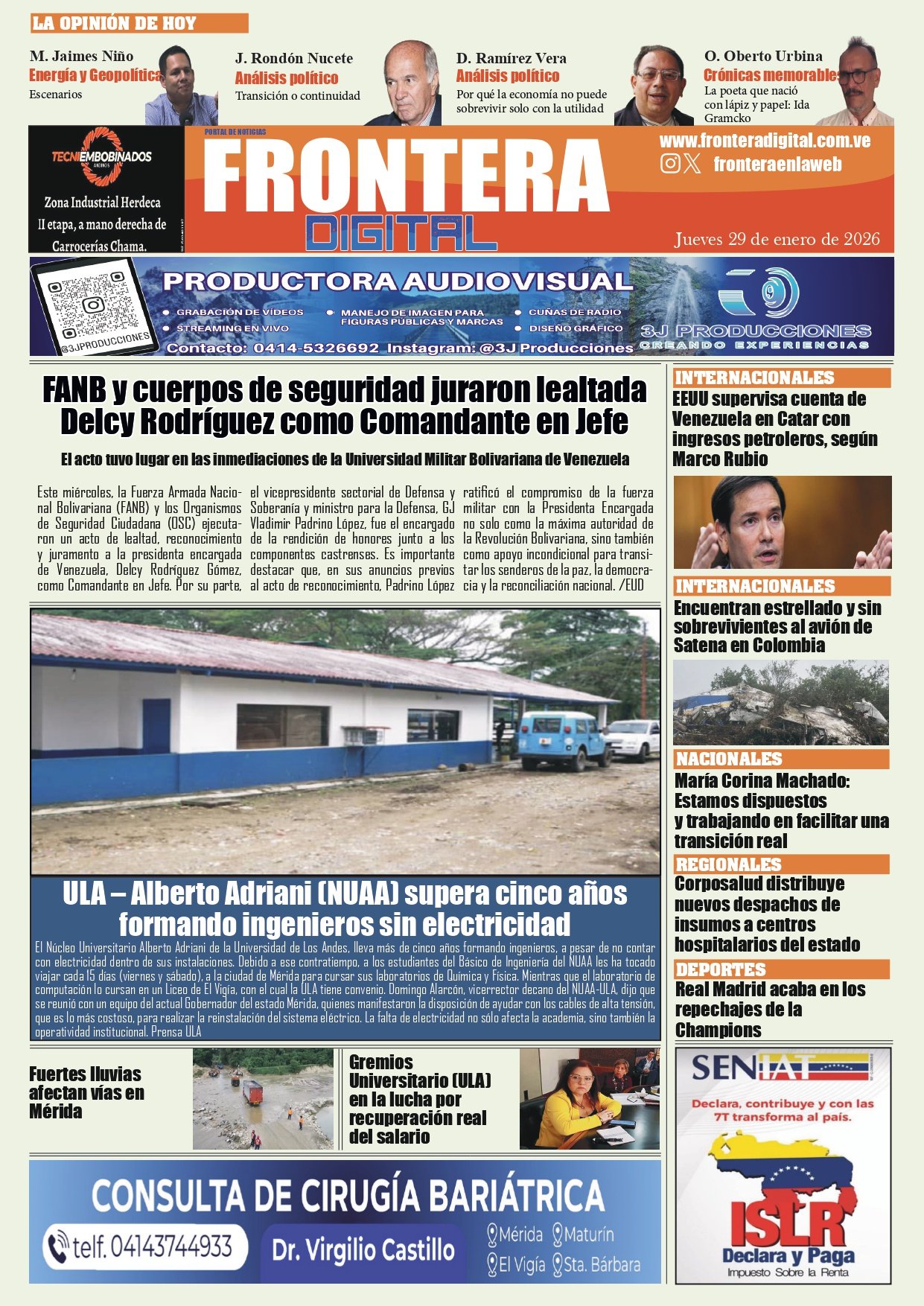 Portadas de este jueves 29 de enero de 2026