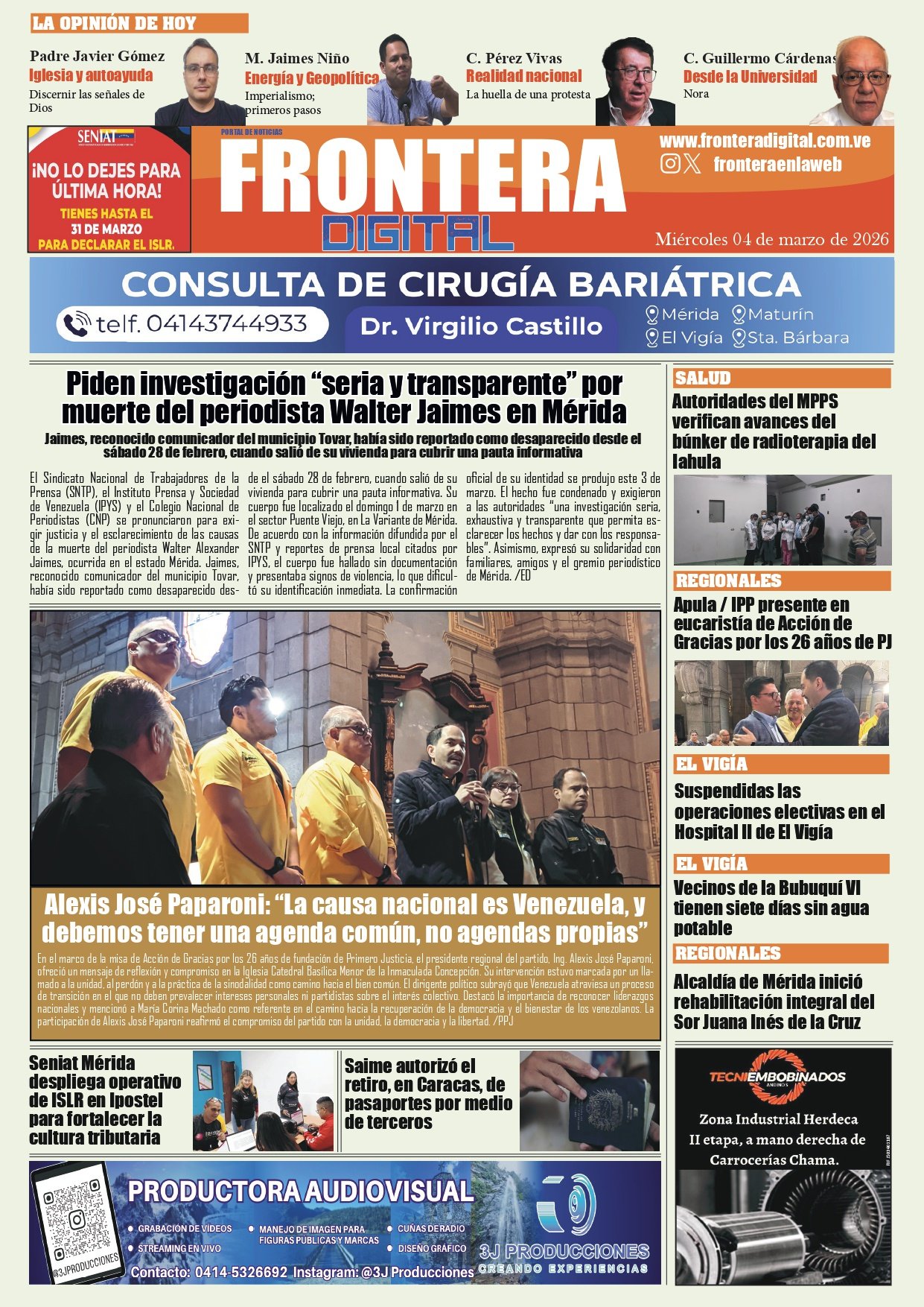 Portadas de este martes 3 de marzo de 2026