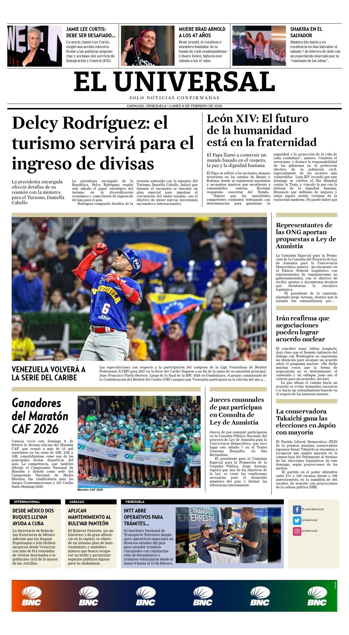 Portadas de este lunes 9 de febrero de 2026