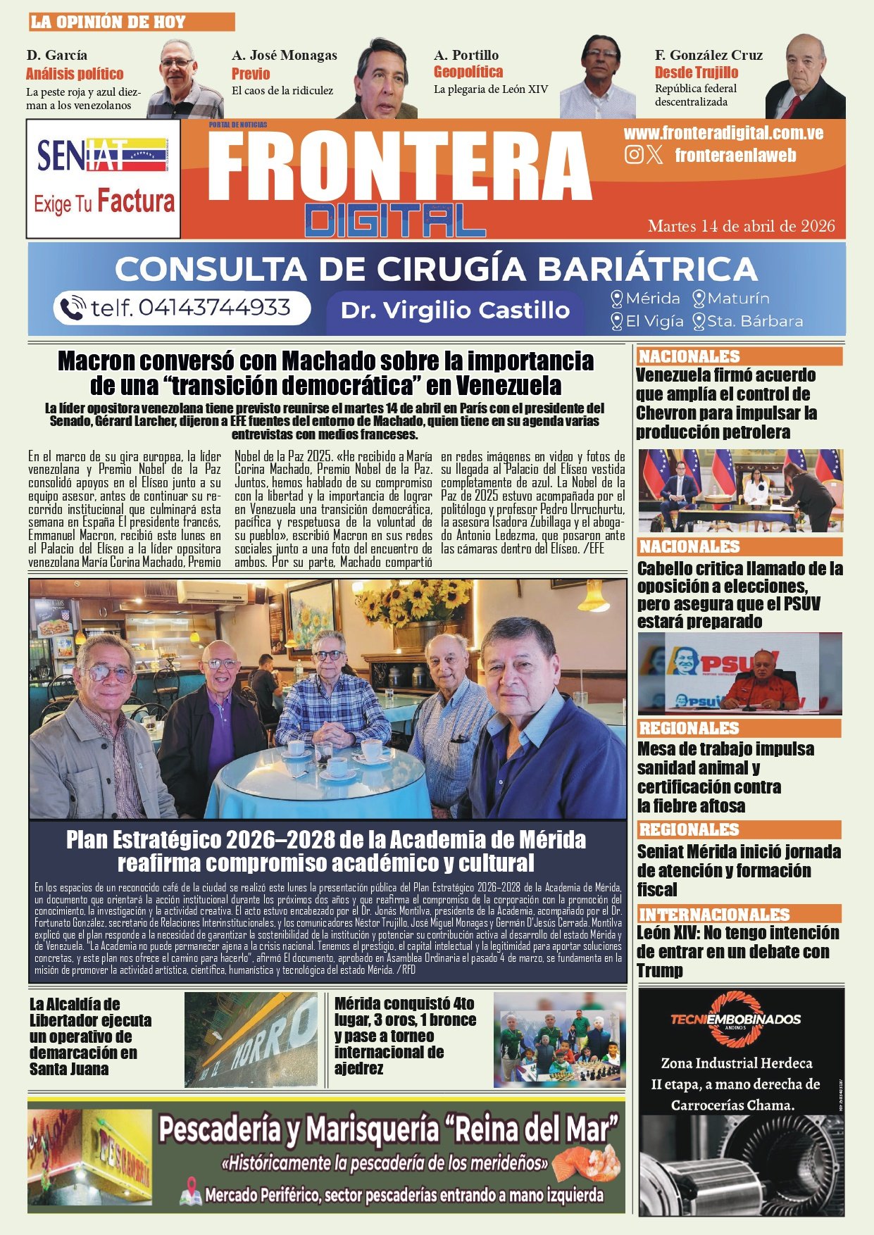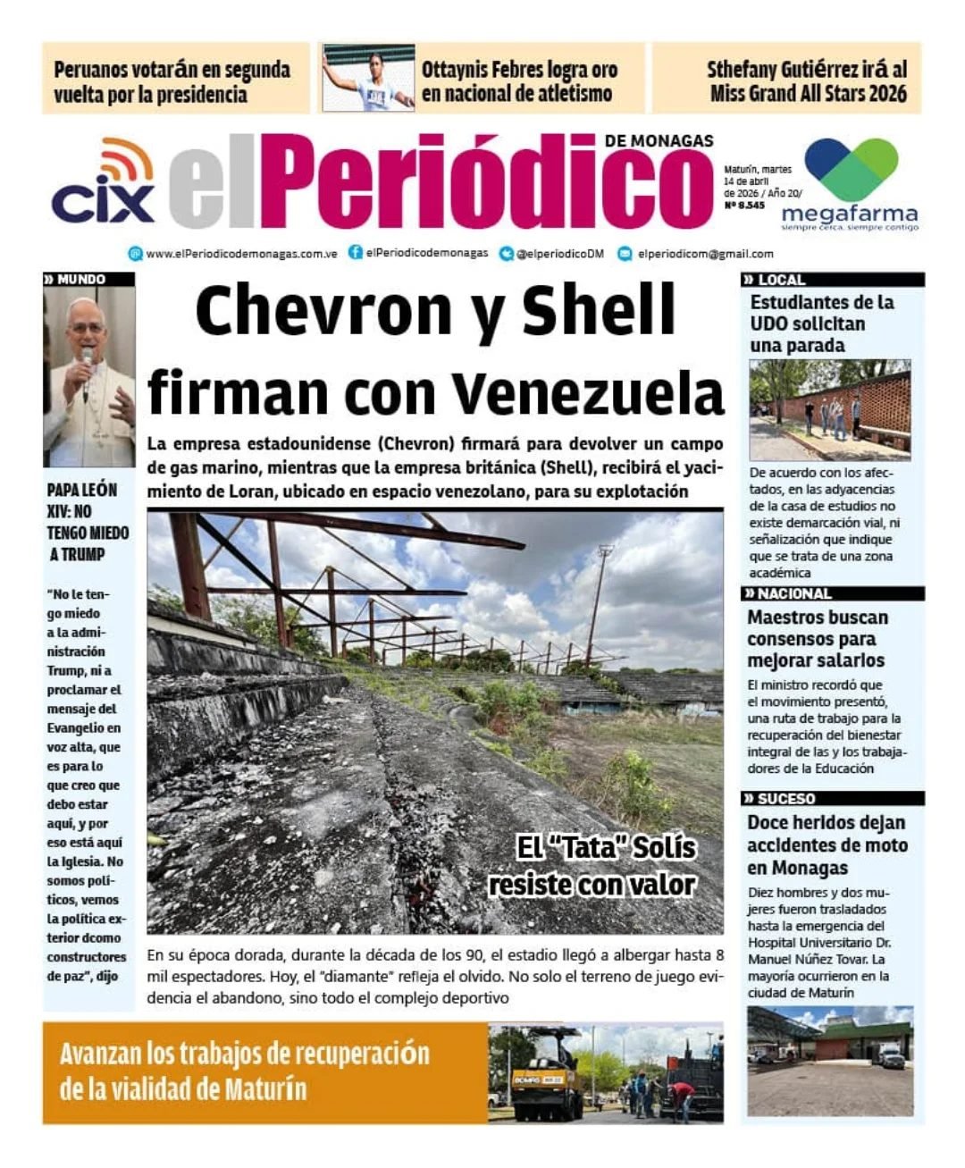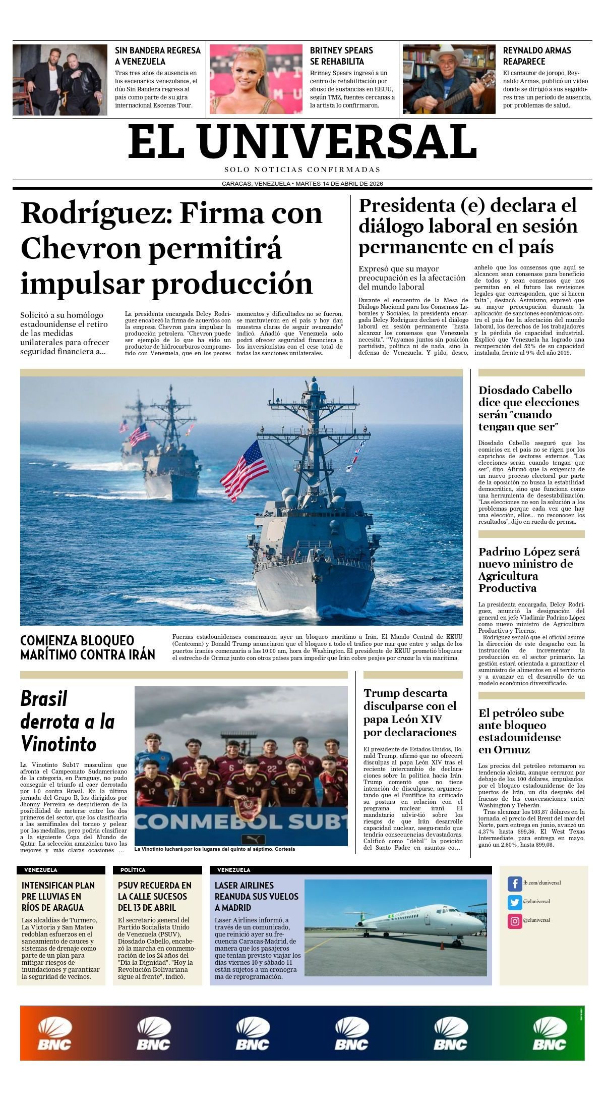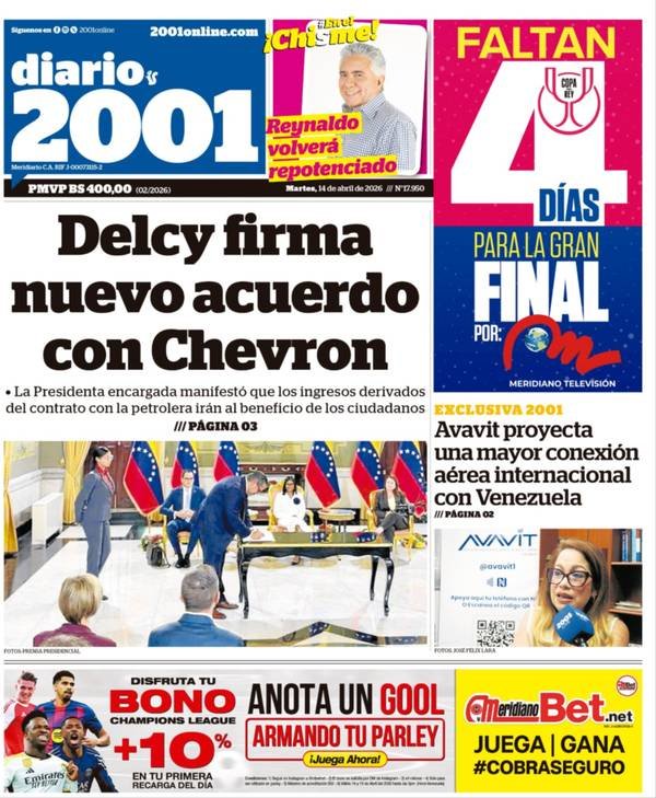 PortadasPortadas de este martes 14 de abril de 2026 Por VenezuelanTimeabril 14, 202604 La noticia no descansa y nosotros tampoco ¡Únete a nuestro Centro Informativo en WhatsApp!