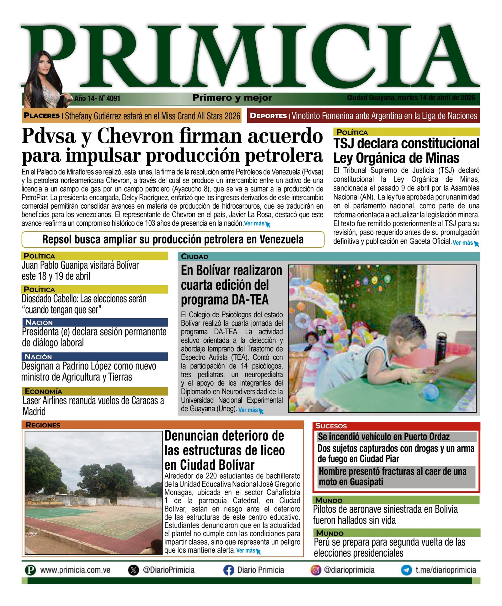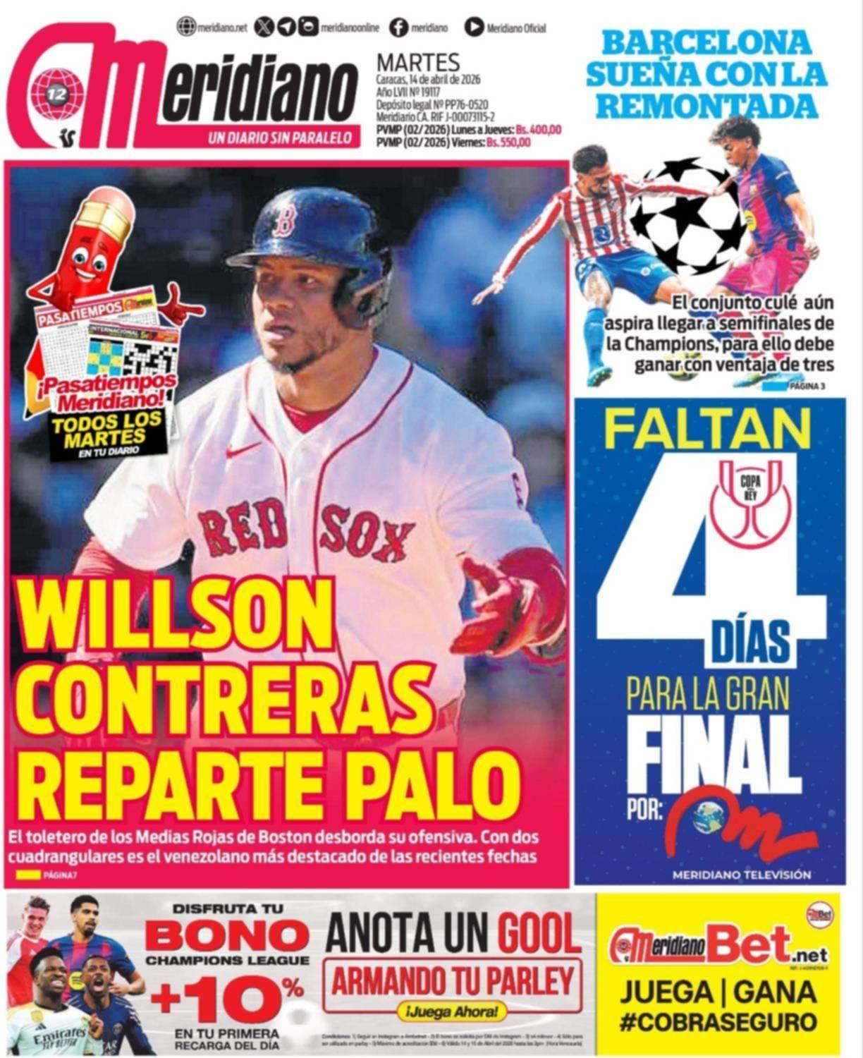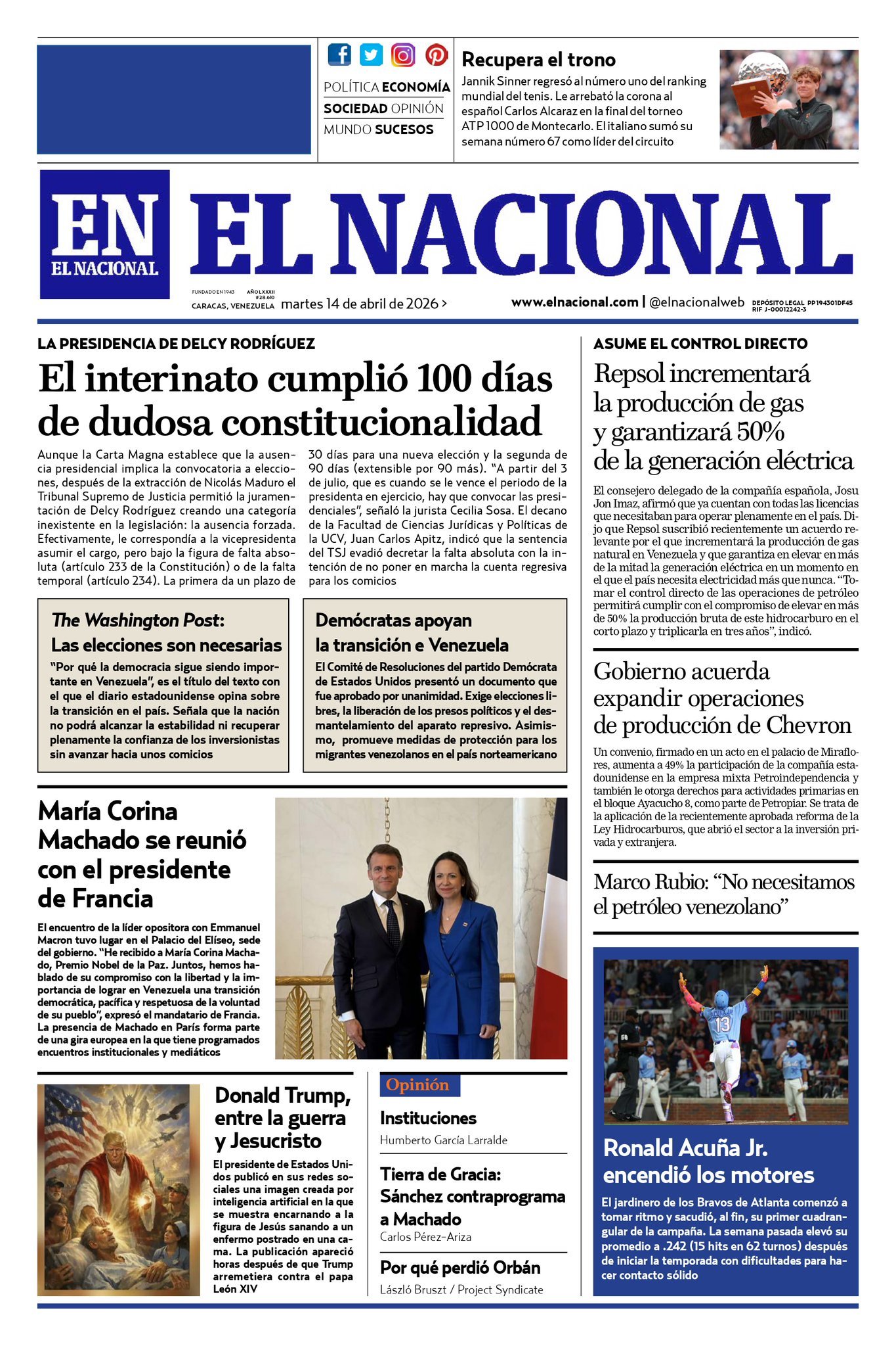 PortadasPortadas de este martes 14 de abril de 2026 Por VenezuelanTimeabril 14, 202604 La noticia no descansa y nosotros tampoco ¡Únete a nuestro Centro Informativo en WhatsApp!