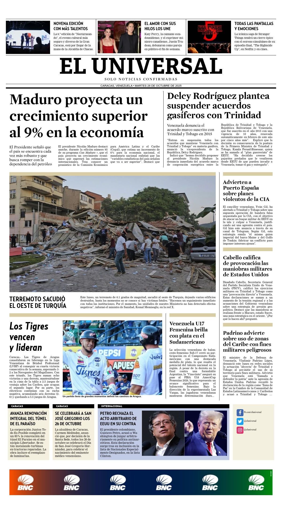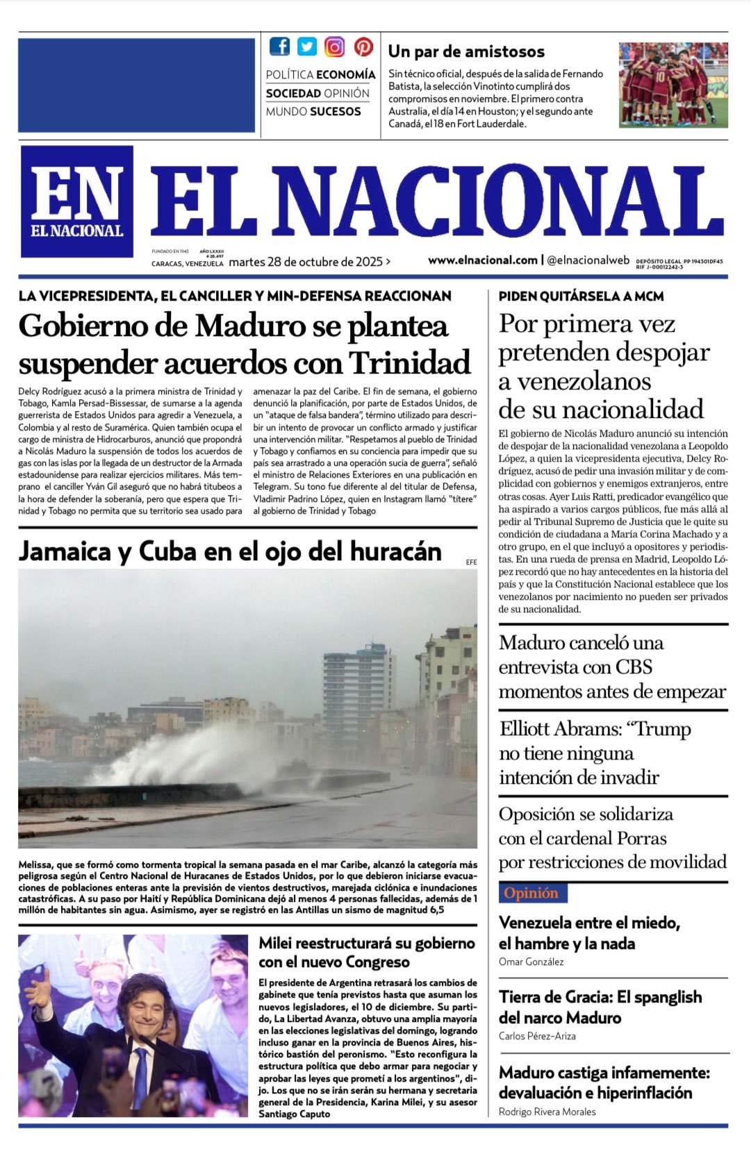 Portadas de este martes 28 de octubre de 2025