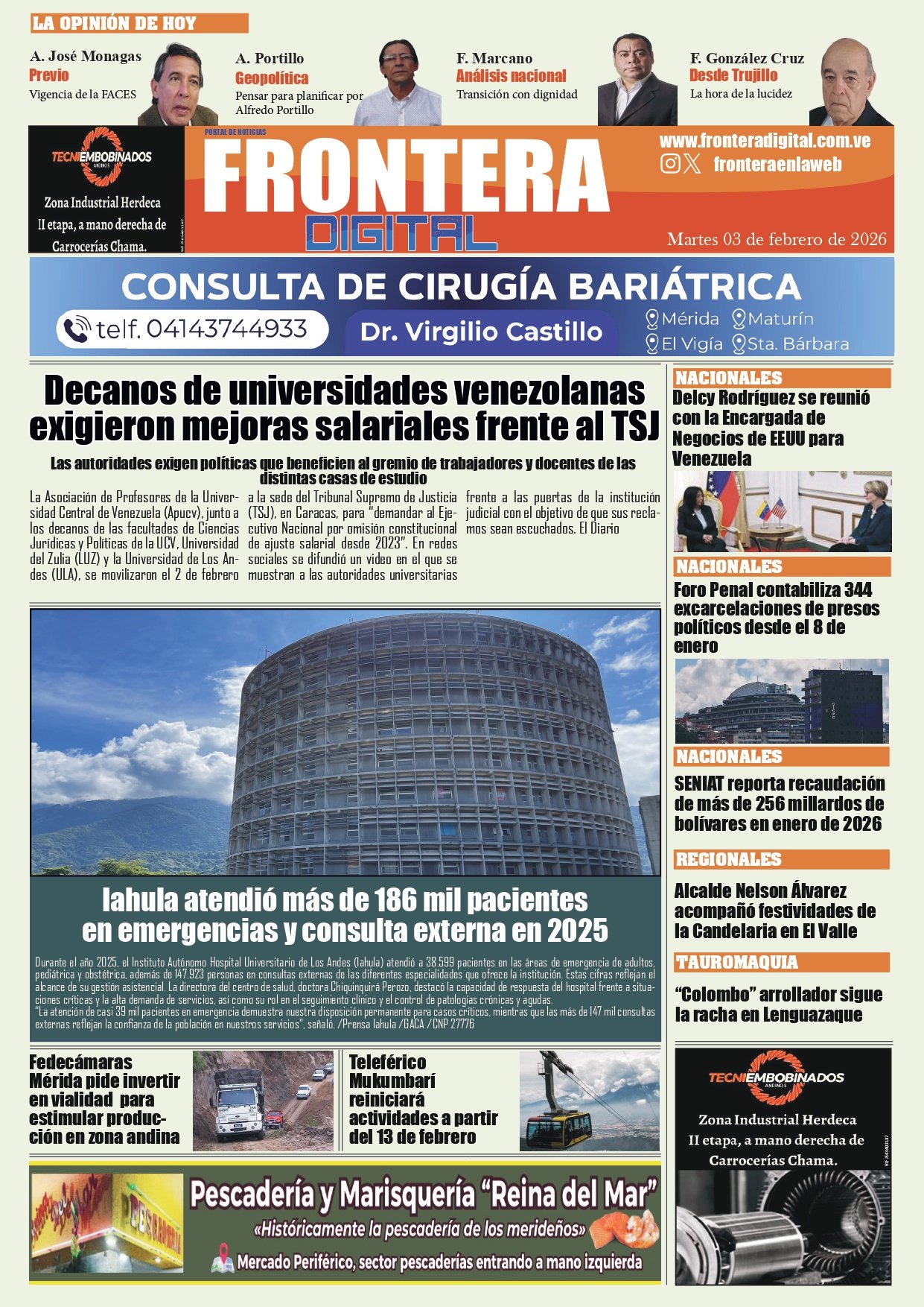 Portadas de este martes 3 de febrero de 2026