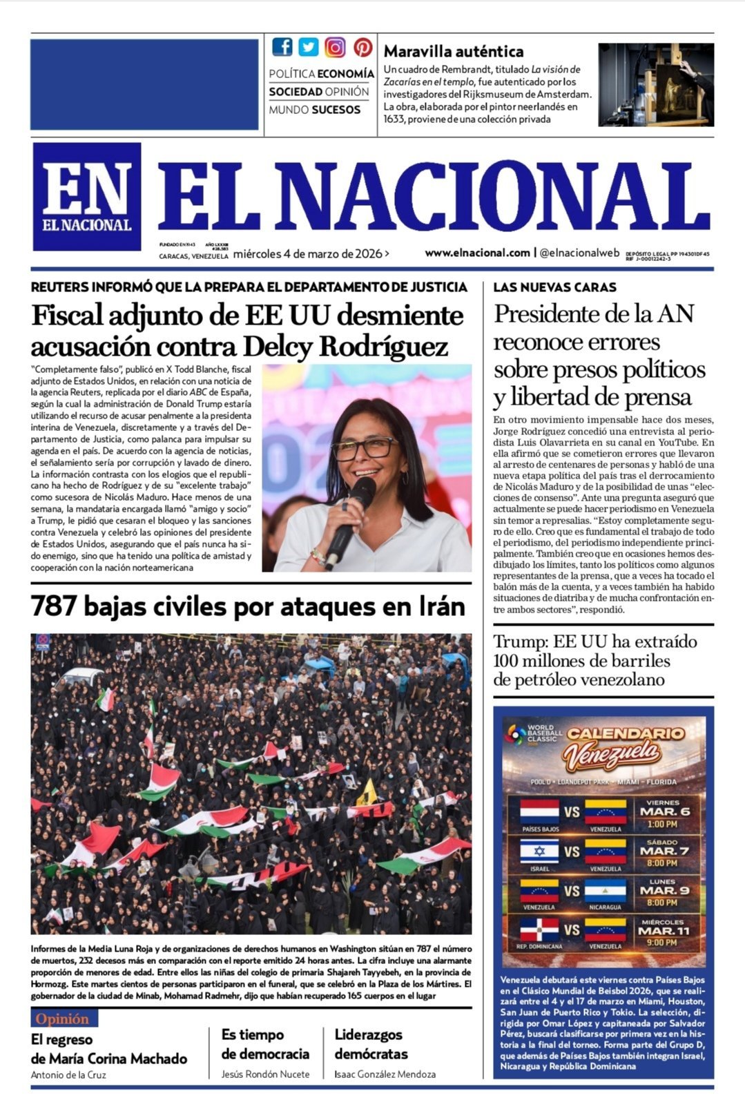 Portadas de este miércoles 4 de marzo de 2026