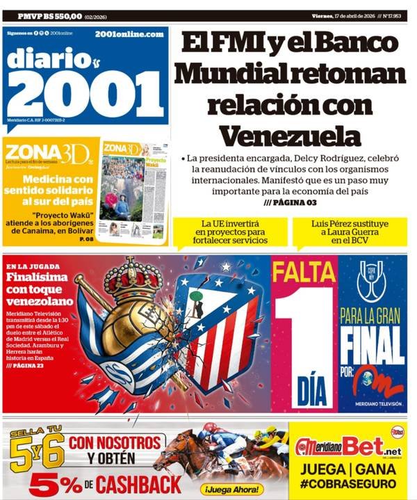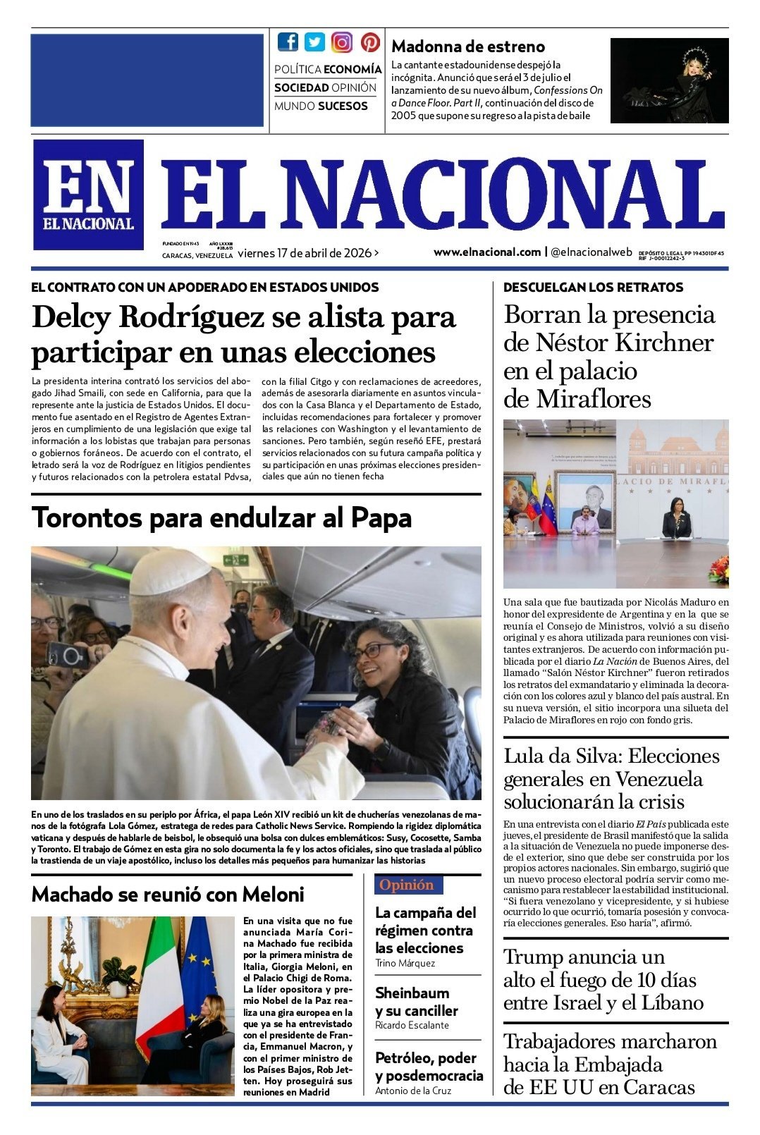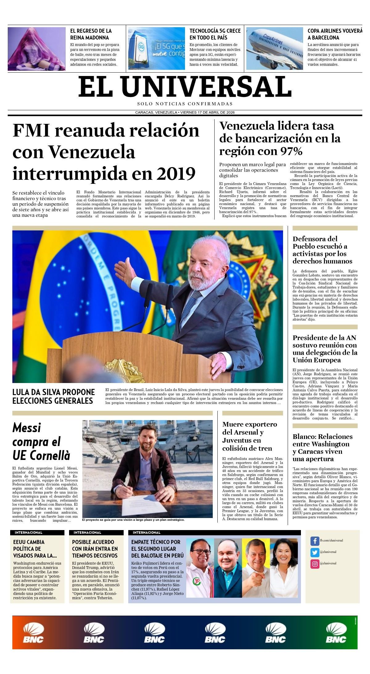 PortadasPortadas de este viernes 17 de abril de 2026 Por VenezuelanTimeabril 17, 202602 La noticia no descansa y nosotros tampoco ¡Únete a nuestro Centro Informativo en WhatsApp!