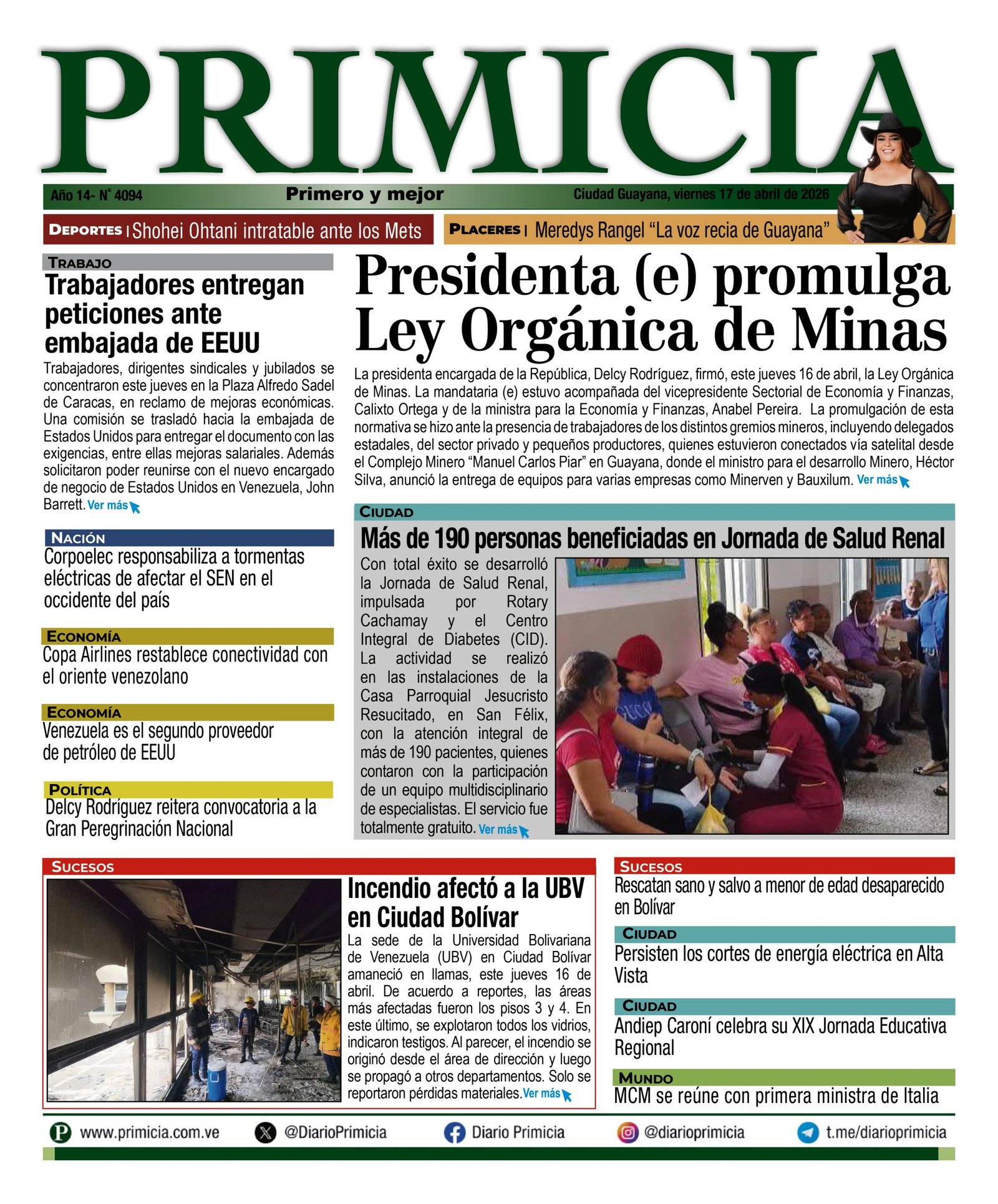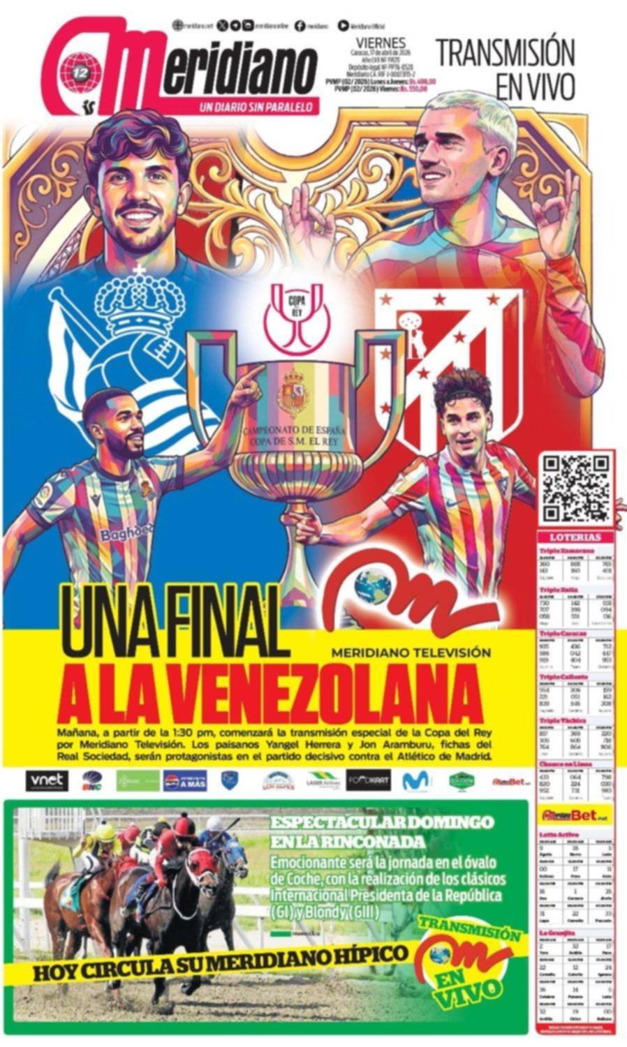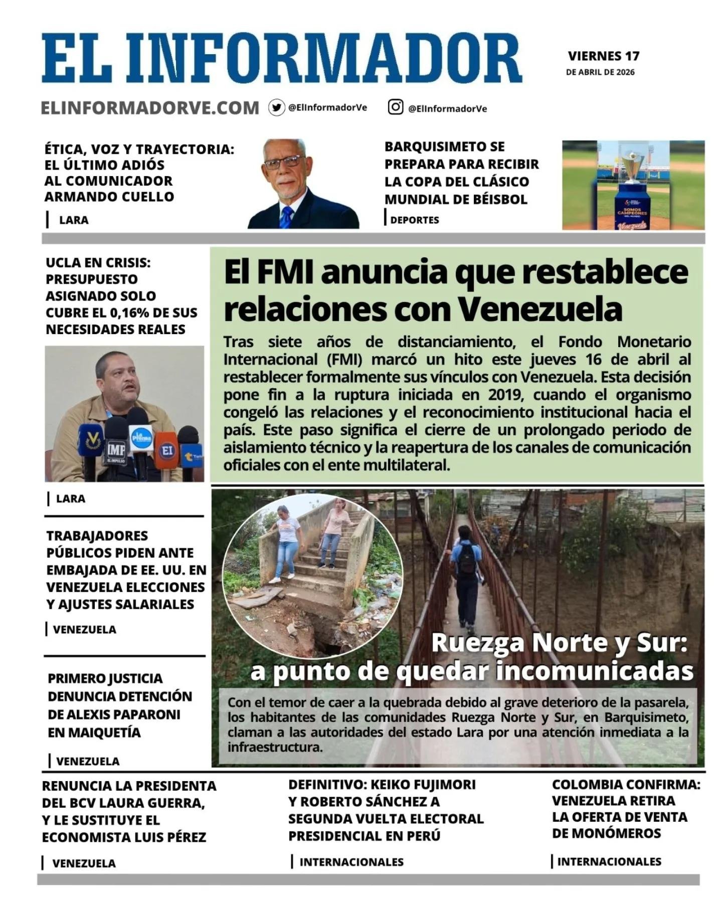 PortadasPortadas de este viernes 17 de abril de 2026 Por VenezuelanTimeabril 17, 202602 La noticia no descansa y nosotros tampoco ¡Únete a nuestro Centro Informativo en WhatsApp!