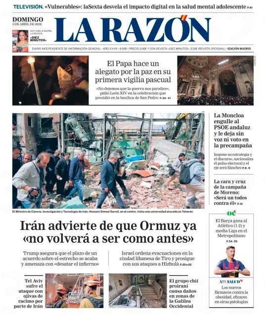 Portadasprensa internacionalPortadas de la prensa internacional de este domingo 5 de abril de 2026 Por VenezuelanTimeabril 4, 202603