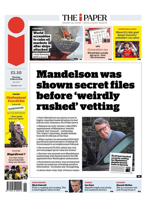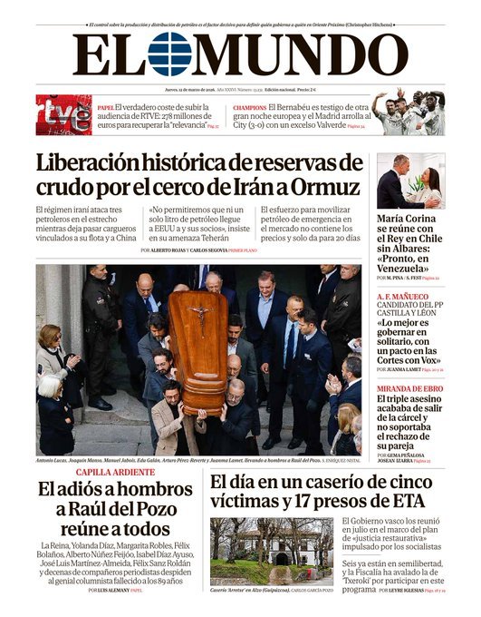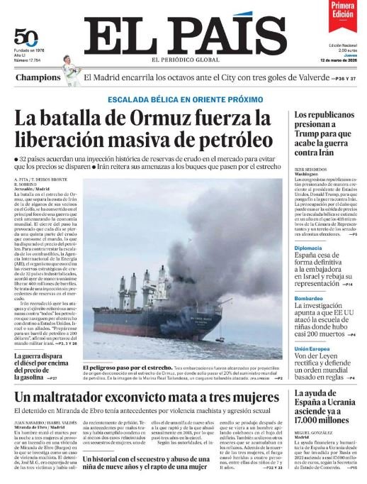 PortadasPortadas de la prensa internacional de este jueves 12 de marzo de 2026 Por VenezuelanTimemarzo 11, 202602 Share0