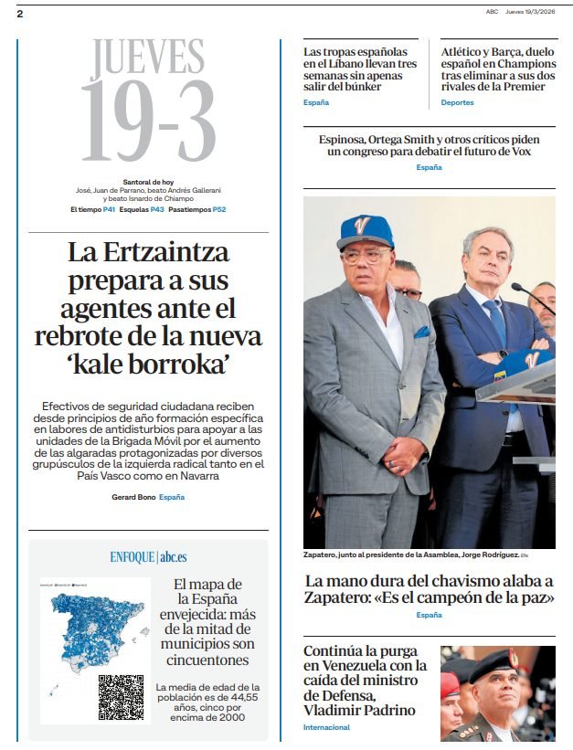 PortadasPortadas de la prensa internacional de este jueves 19 de marzo de 2026 Por VenezuelanTimemarzo 18, 202603 Share0