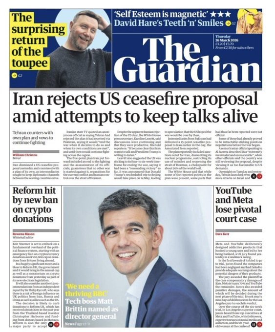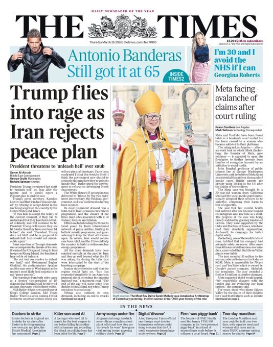 PortadasPortadas de la prensa internacional de este jueves 26 de marzo de 2026 Por VenezuelanTimemarzo 25, 202603 Share0