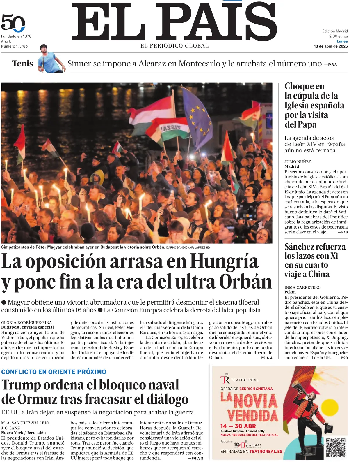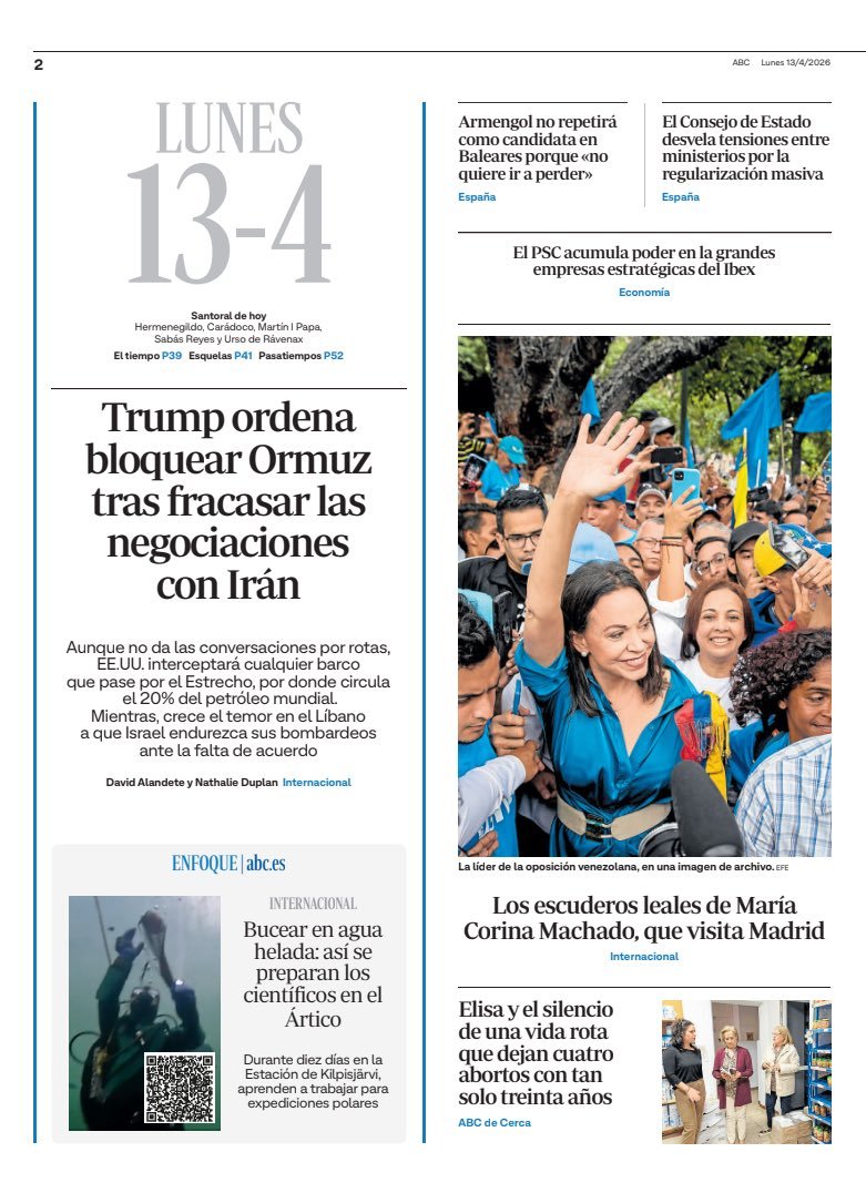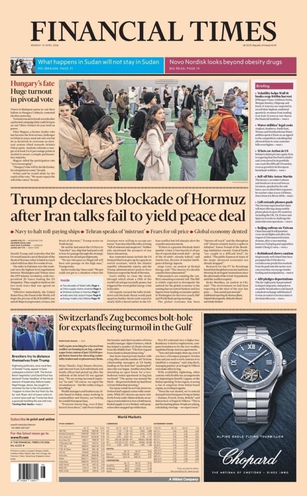 PortadasPortadas de la Prensa InternacionalPortadas de la prensa internacional de este lunes 13 de abril de 2026 Por VenezuelanTimeabril 12, 202603