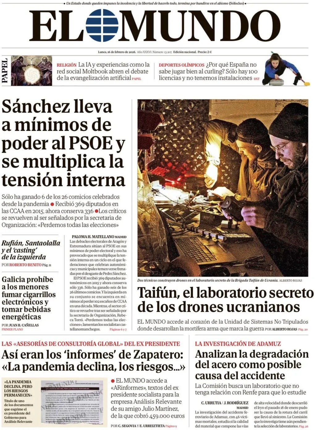 PortadasPortadas de la Prensa InternacionalPortadas de la prensa internacional de este lunes 16 de febrero de 2026 Por VenezuelanTimefebrero 15, 202601 Share0