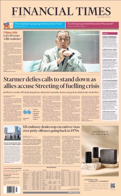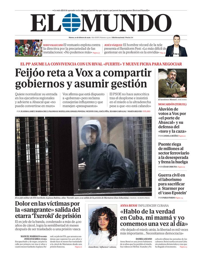 PortadasPortadas de la prensa internacional de este martes 10 de febrero de 2026 Por VenezuelanTimefebrero 9, 202601 Share0