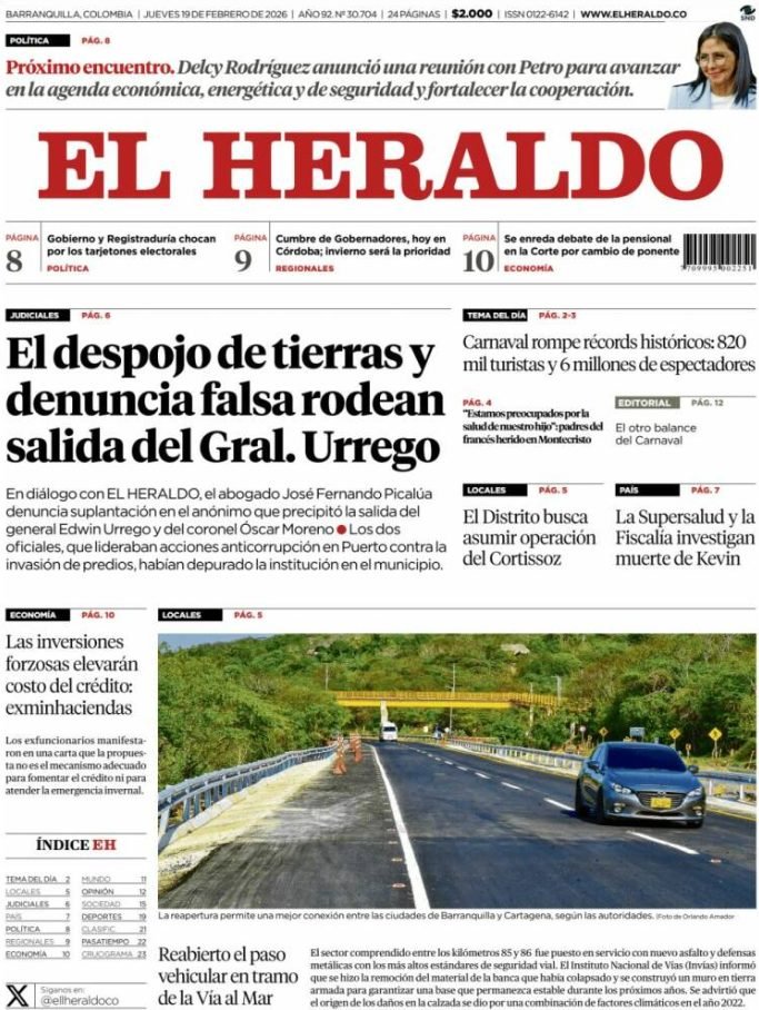 PortadasPortadas latinoamericanas de este jueves 19 de febrero de 2026 Por VenezuelanTimefebrero 19, 202602 Share0
