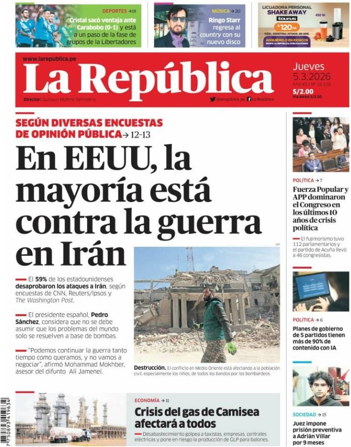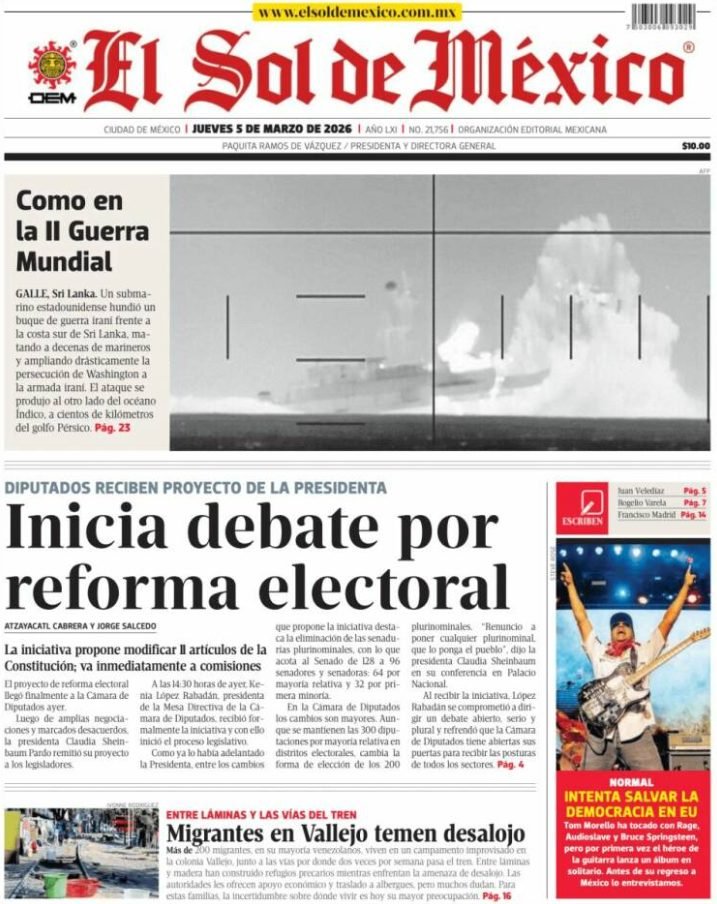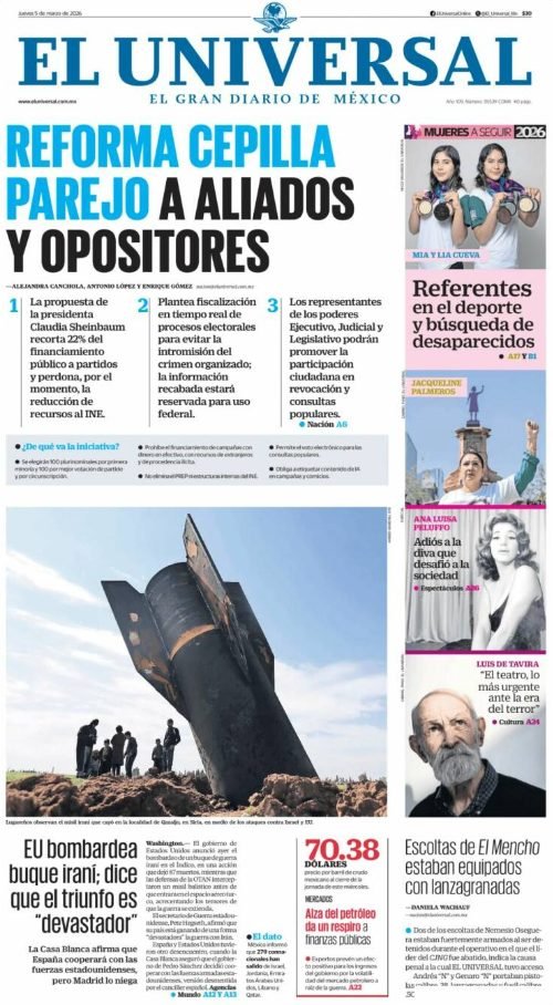 PortadasPortadas latinoamericanas de este jueves 5 de marzo de 2026 Por VenezuelanTimemarzo 5, 202601 Share0