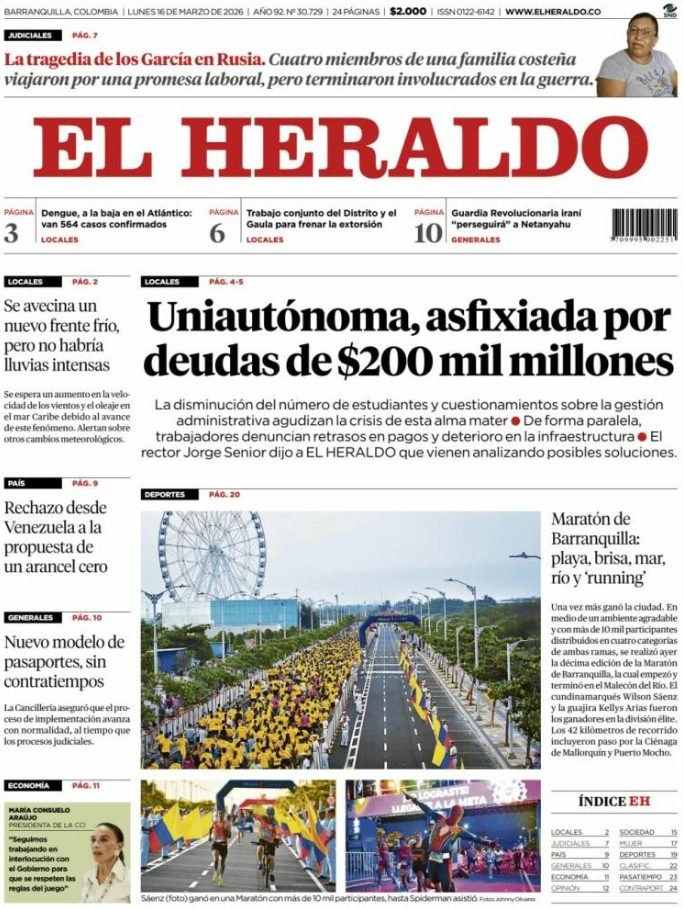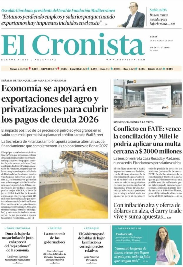 PortadasPortadas latinoamericanas de este lunes 16 de marzo de 2026 Por VenezuelanTimemarzo 16, 202602 Share0