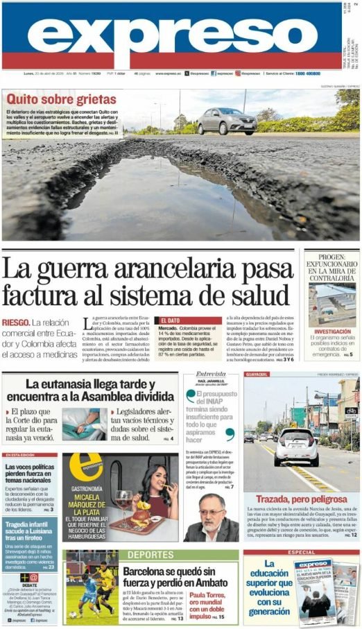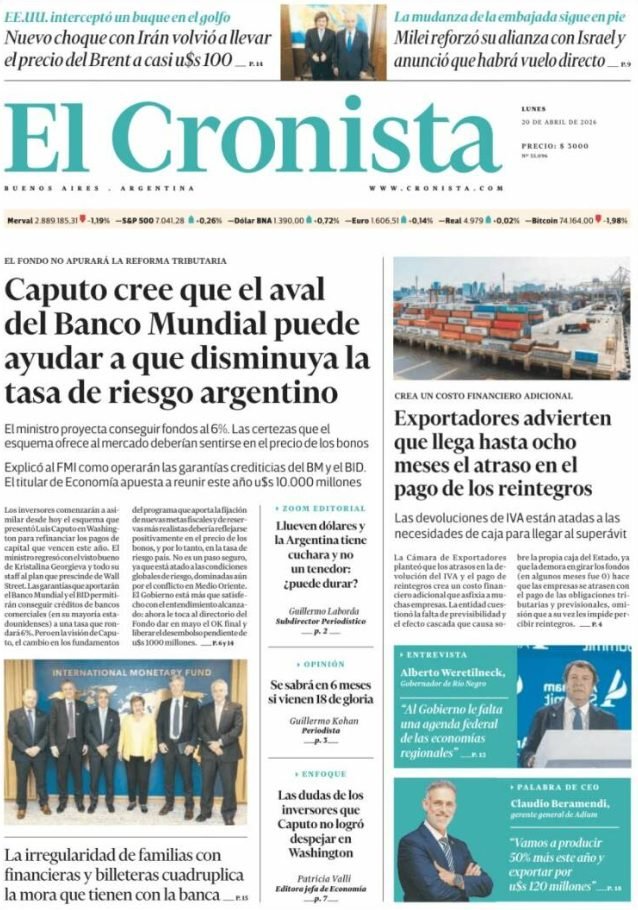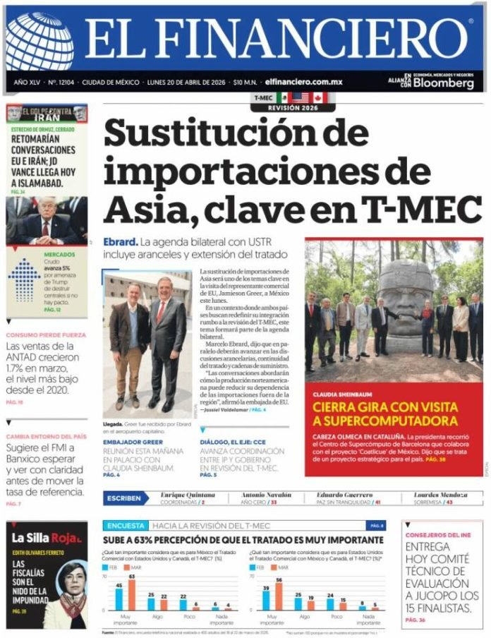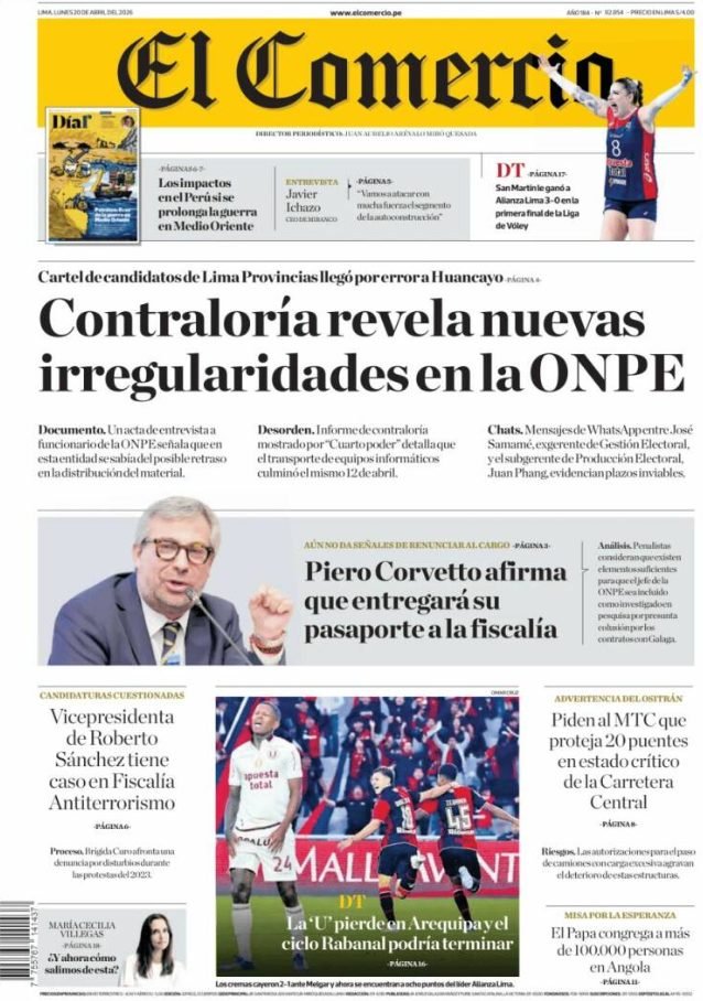 Portadas latinoamericanas de este lunes 20 abril de 2026