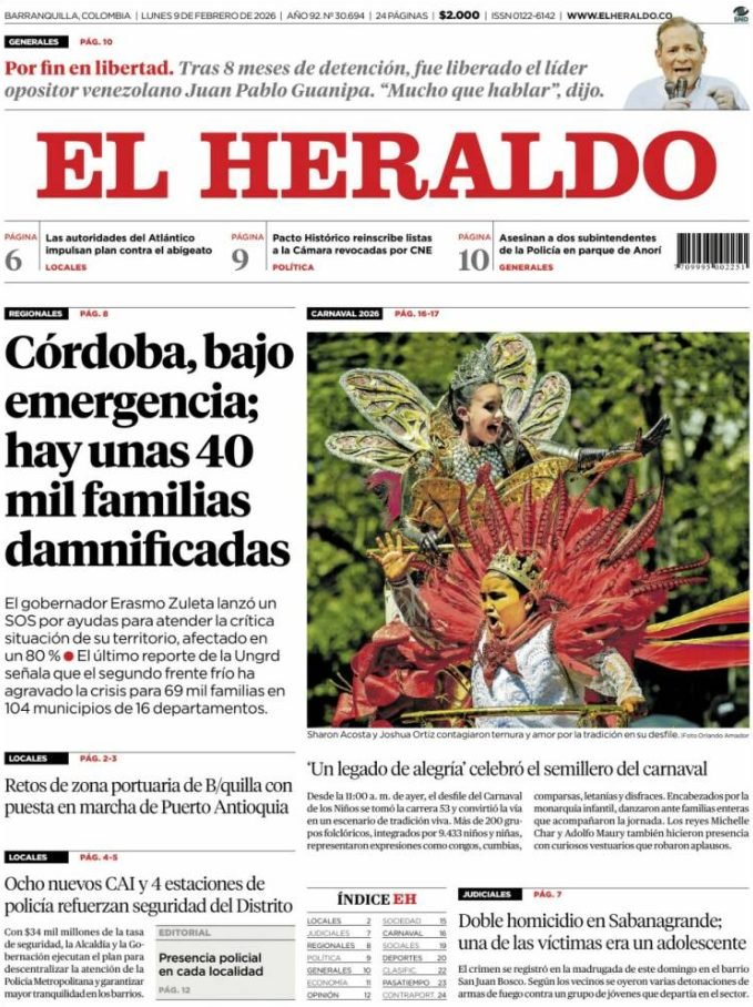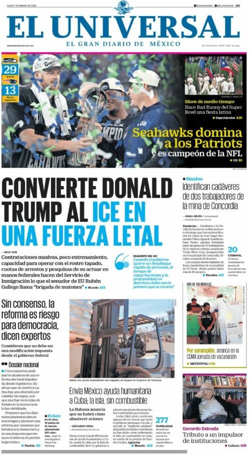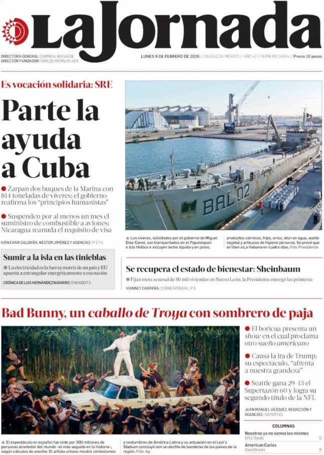 PortadasPortadas latinoamericanas de este lunes 9 de febrero de 2026 Por VenezuelanTimefebrero 9, 202602 Share0