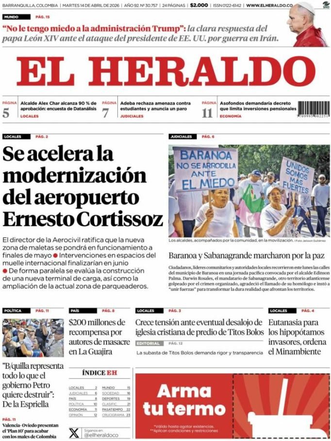 PortadasPortadas latinoamericanas de este martes 14 de abril de 2026 Por VenezuelanTimeabril 14, 202604