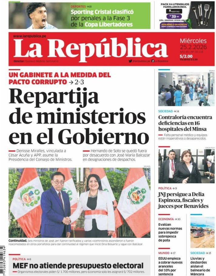 PortadasPortadas latinoamericanas de este miércoles 25 de febrero de 2026 Por VenezuelanTimefebrero 25, 202603 Share0