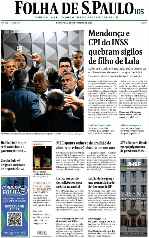 PortadasPortadas latinoamericanas de este viernes 27 de febrero de 2026 Por VenezuelanTimefebrero 27, 202601 Share0