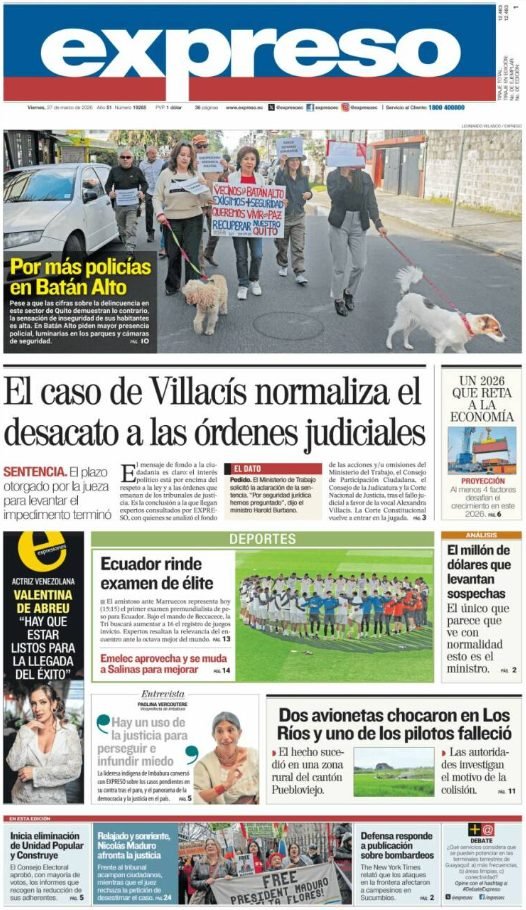 PortadasPortadas latinoamericanas de este viernes 27 de marzo de 2026 Por VenezuelanTimemarzo 27, 202601