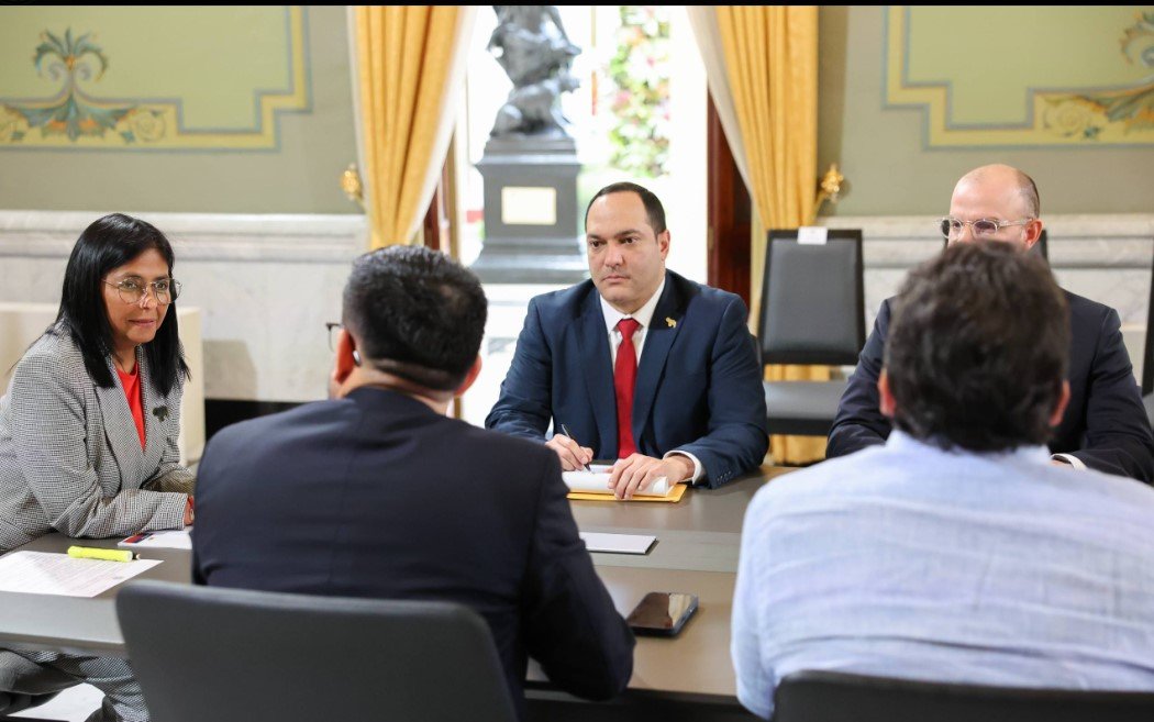 La mandataria encargada afirmó la noche del viernes que estaba «muy complacida» de su reunión con el ministro colombiano y su equipo, quienes fueron recibidos en el Palacio de Miraflores, sede del Ejecutivo venezolano, en Caracas.