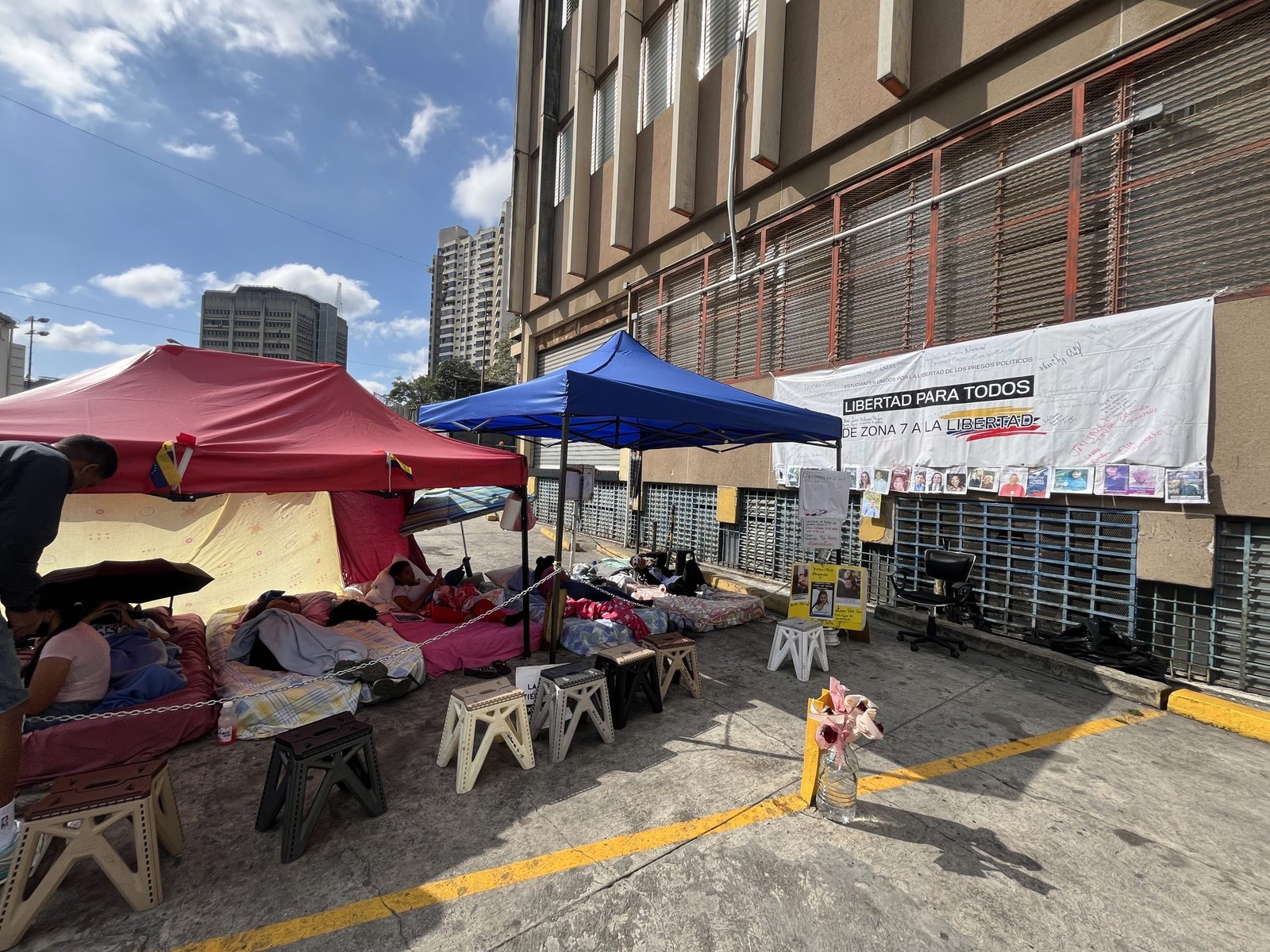 La manifestación pacífica comenzó como una medida de presión ante la falta de respuestas a las solicitudes de revisión de casos y liberación de detenidos como lo prometió Jorge Rodríguez hace dos semanas atrás. Las familiares han reiterado que no se moverán del lugar “hasta que su cuerpo se los permita”.