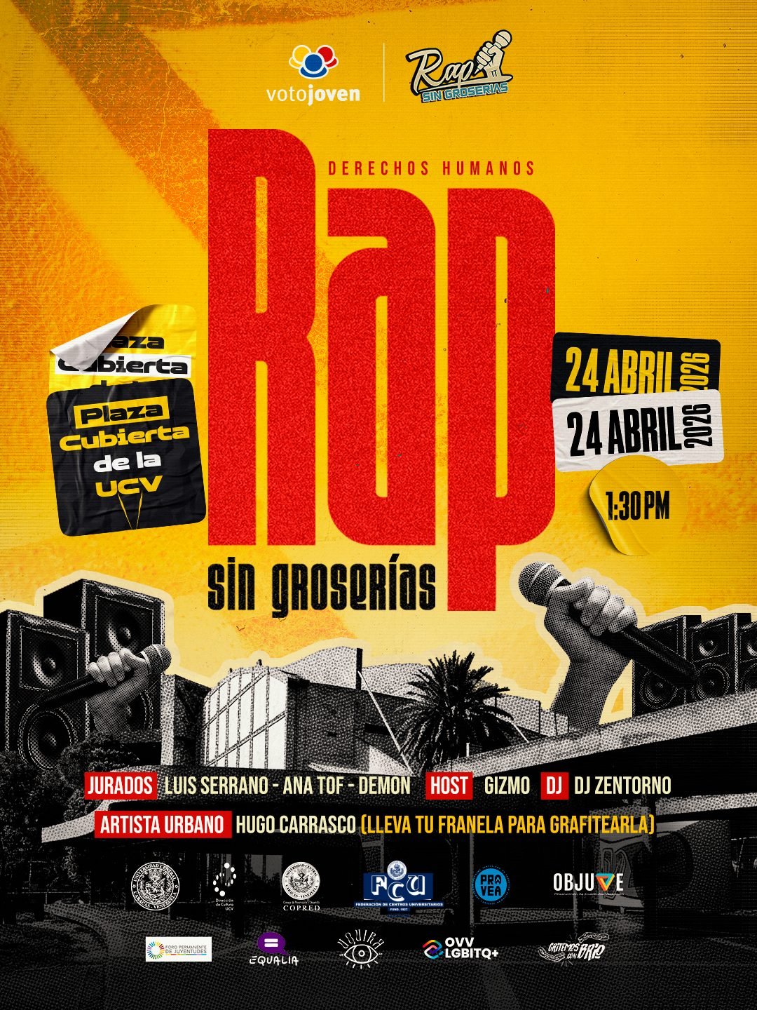 La organización Voto Joven en alianza con el equipo de Rap Sin Groserías, la Federación de Centros Universitarios de la UCV y diversas