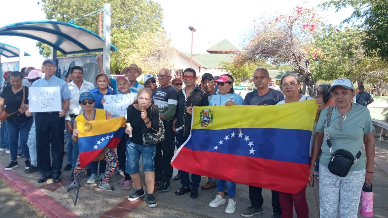 En Punto Fijo, se concentraron en el parque Cujizal. La delegada de Suma Falcón, Migdalia Zerpa, detalló que actualmente los docentes trabajan con un sueldo de hambre que no cubre las necesidades básicas, ni siquiera para cubrir la canasta alimentaria.