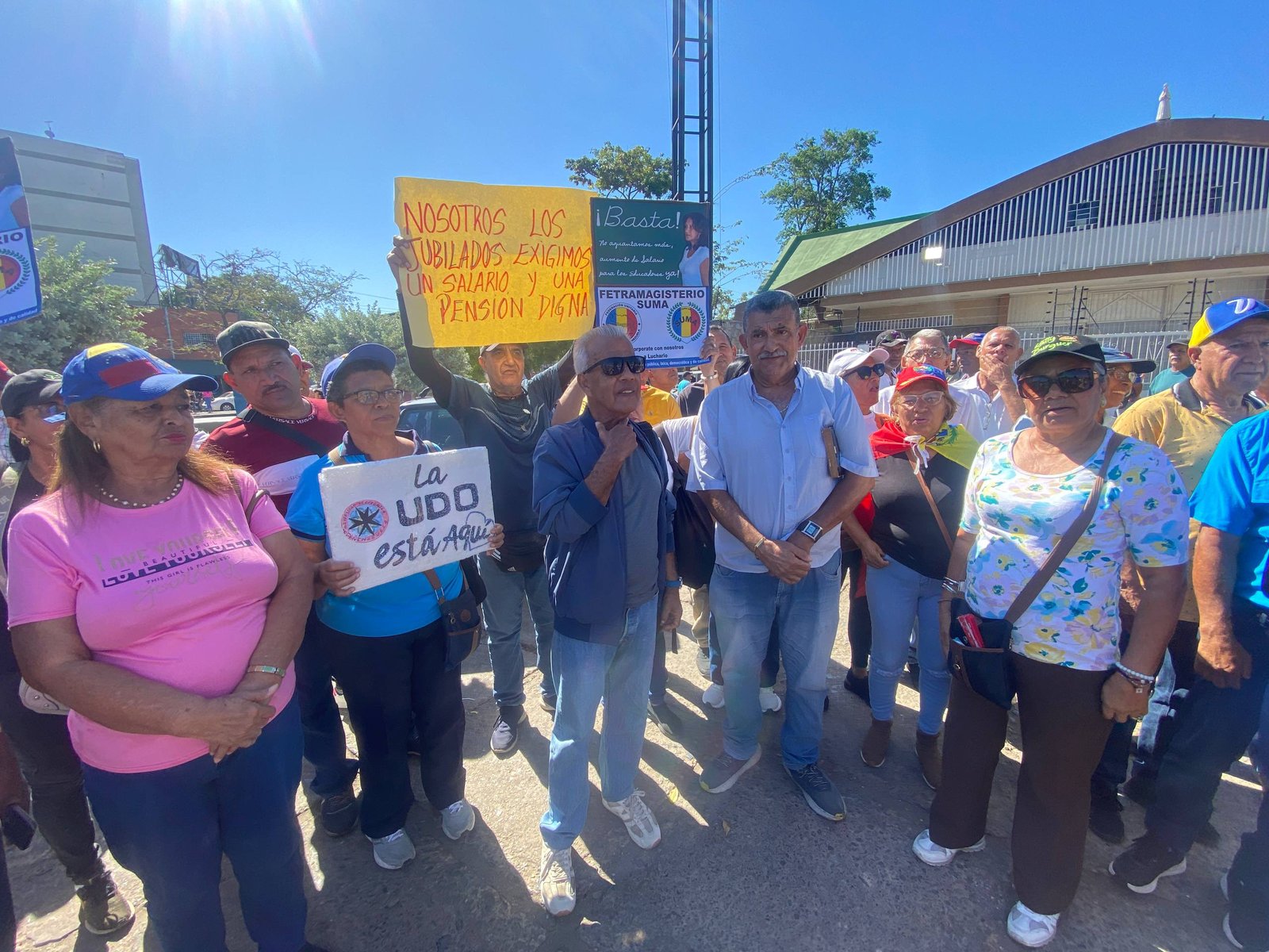 En atención a la convocatoria nacional de gremios y sindicatos para marchar este lunes 23 de marzo, trabajadores, jubilados y pensionados se congregaron en las inmediaciones de la Iglesia Virgen del Valle en Cumaná, capital del estado Sucre, para luego marchar hasta la Inspectoría del Trabajo.
