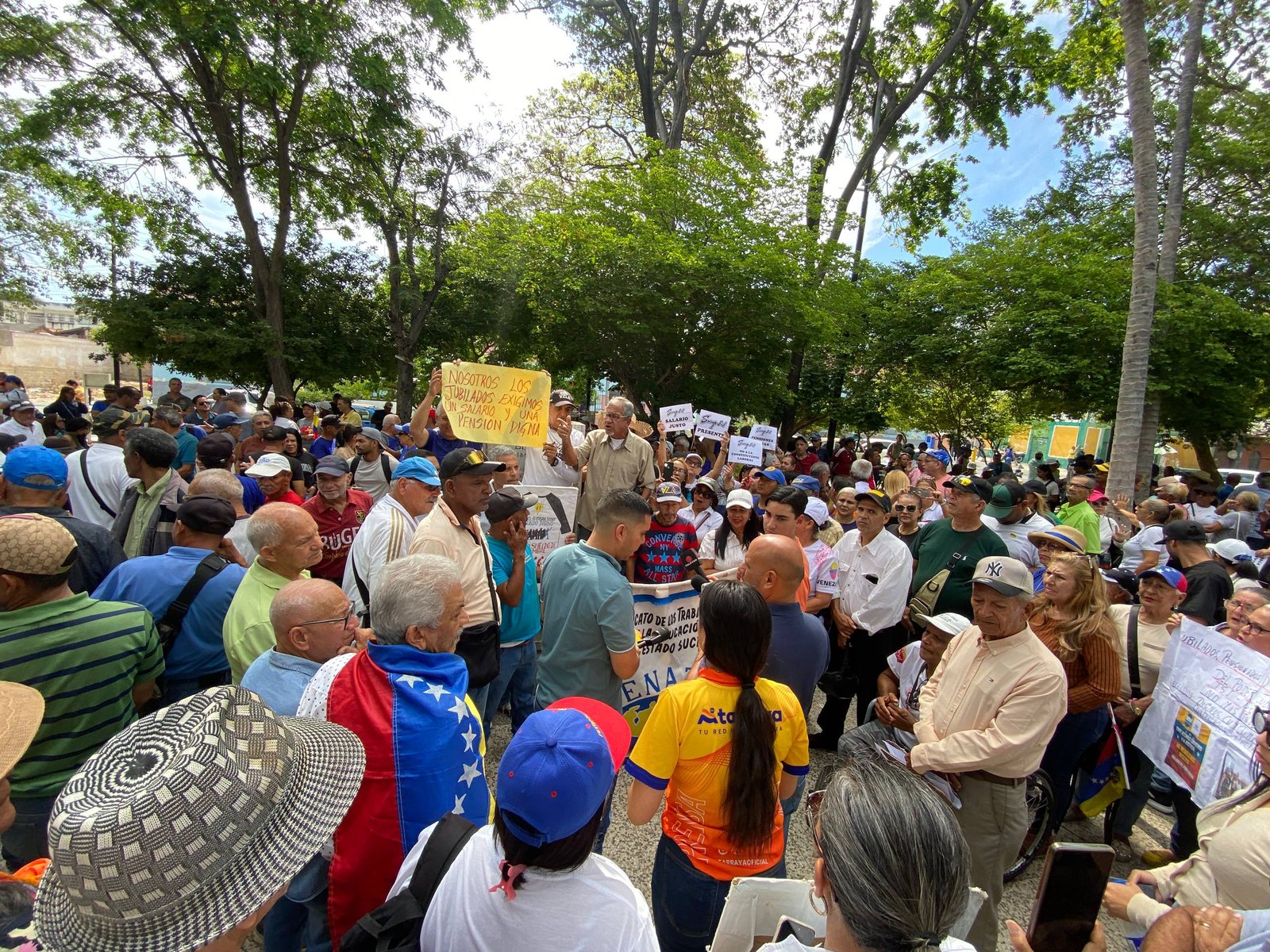 Desde tempranas horas de la mañana, la plaza Andrés Eloy Blanco en Cumaná se convirtió en el epicentro de la concentración capitalina. Allí, representantes de distintos sectores manifestaron su rechazo a lo que consideran una política de «asfixia salarial».