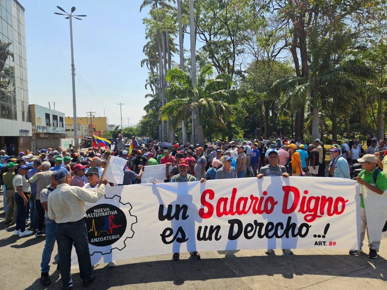 Este jueves 9 de abril los trabajadores activos y jubilados de diferentes sectores salieron a protestar en Barcelona, capital del estado Anzoátegui, para exigir una vez más un incremento salarial que les permita cubrir sus necesidades básicas.
