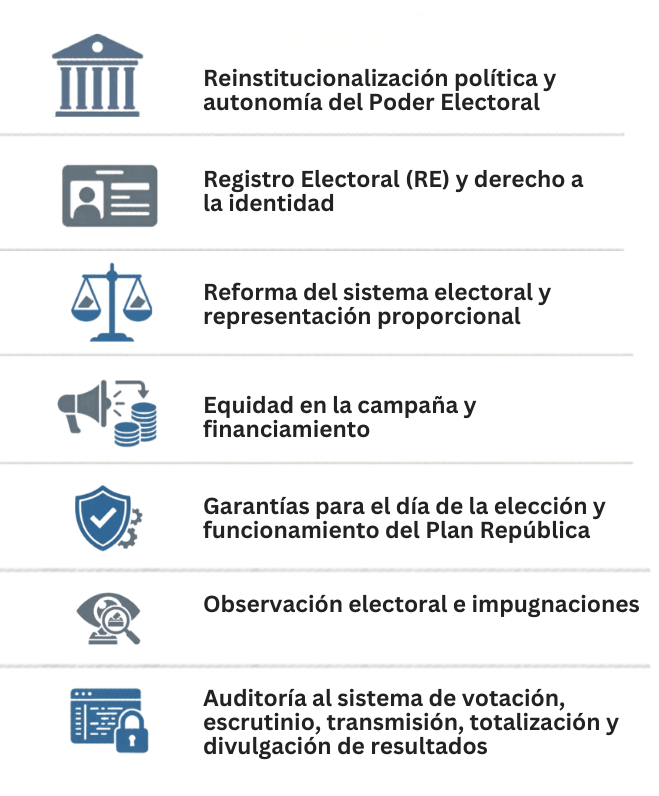 El estatuto electoral transitorio se enfocaría en siete áreas esenciales del ciclo electoral venezolano: