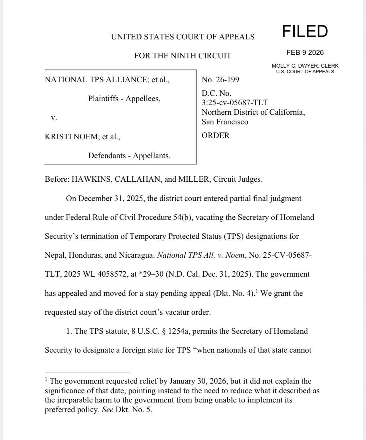 Afirmó además que el TPS “nunca fue diseñado para ser permanente” y acusó a administraciones anteriores de convertirlo en “un programa de amnistía de facto durante décadas”.