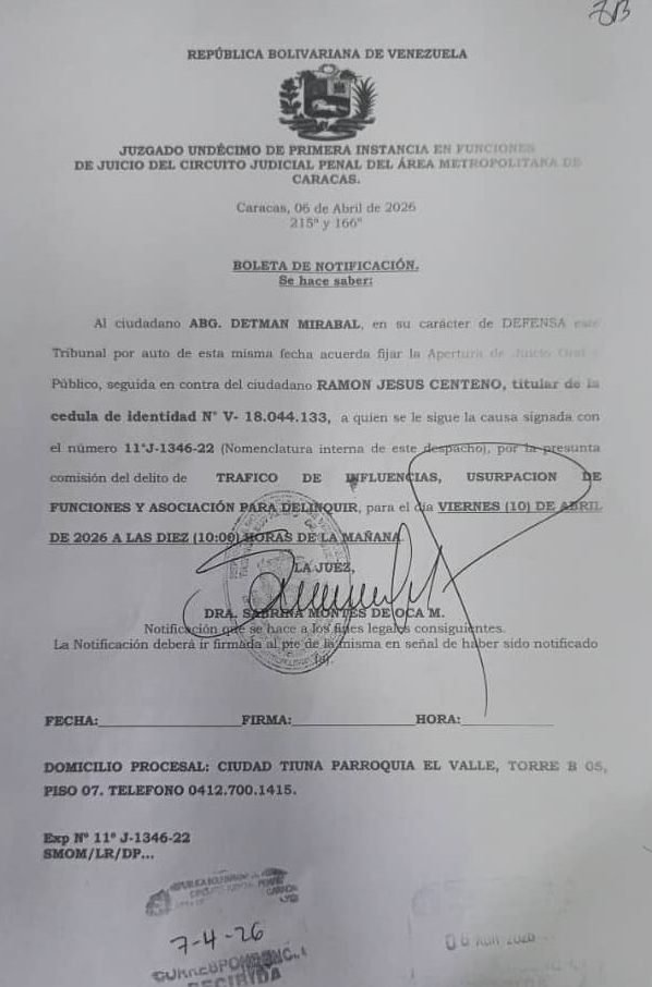 Funcionarios del Juzgado Undécimo de Primera Instancia del Circuito Judicial Penal del Área Metropolitana de Caracas informaron al periodista Ramón Centeno que no hay despacho pese a que la jueza Sabrina Montes de Oca le había citado previamente en una boleta de notificación para este viernes.