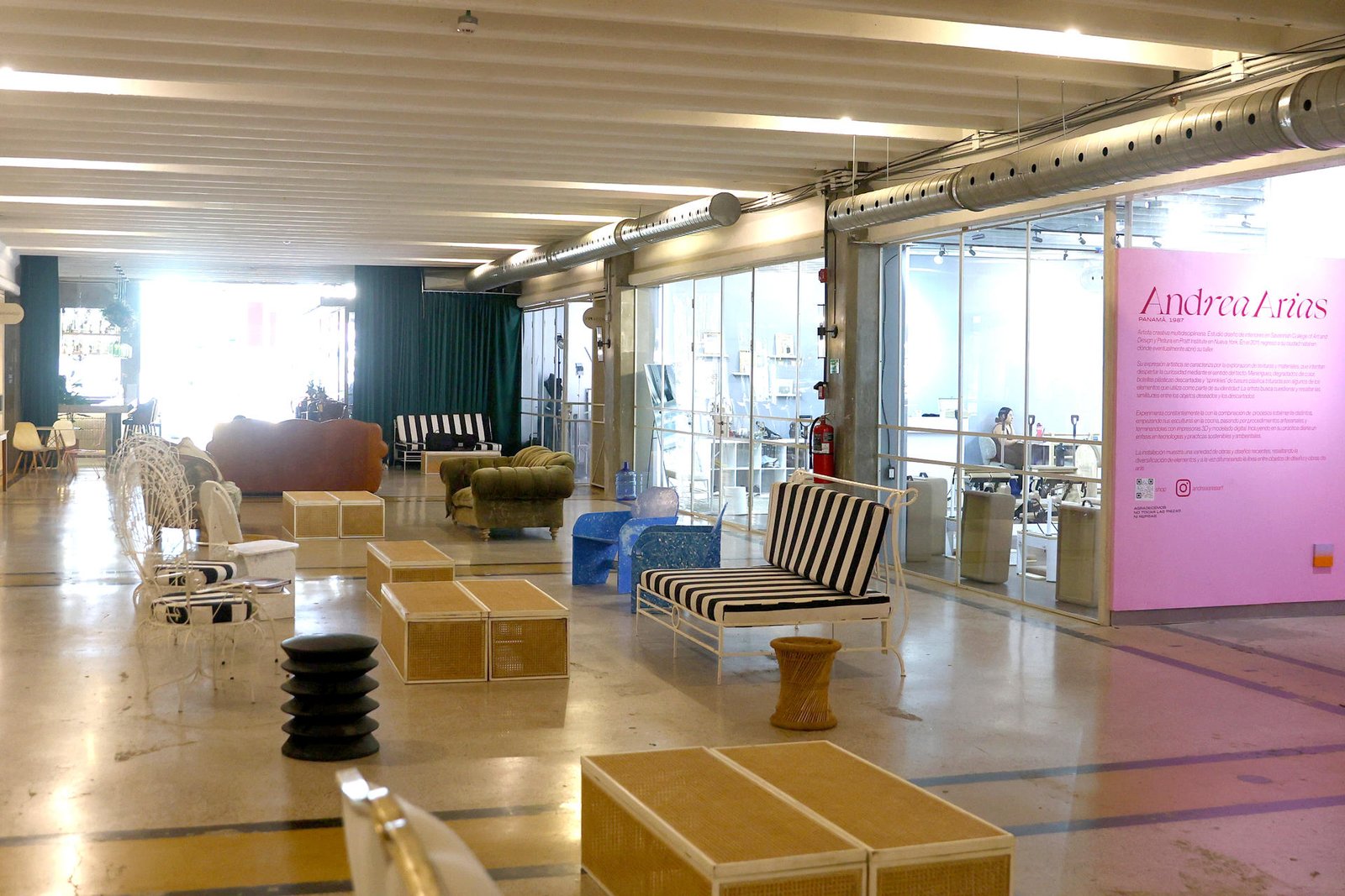 La restauración ha conservado «el alma del edificio», pues se mantienen elementos del piso original, a veces con vetas, en el vestíbulo de la Avenida Central, donde los techos han sido desnudados y están en obra gris adrede, para darles un toque industrial a este espacio flexible, como explica el arquitecto.
