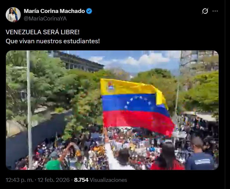La líder opositora María Corina Machado expresó este jueves su respaldo a los estudiantes venezolanos que salieron a las calles en distintas ciudades del país para conmemorar el Día de la Juventud y exigir la liberación plena de todos los presos políticos.