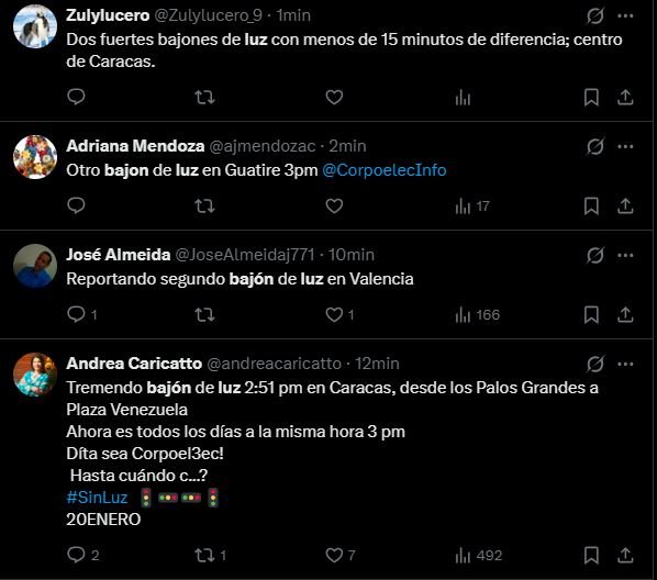 Según los reportes recopilados en X, el bajón de luz impactó principalmente en la Gran Caracas, pero se extendió a regiones como Miranda, Carabobo, Anzoátegui, Monagas, Barinas, Aragua, Mérida y Táchira.