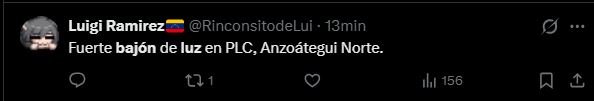 Usuarios de la red social X (anteriormente Twitter) reportaron fluctuaciones intensas alrededor de las 2:50 pm, incluyendo apagón total y altas fluctuaciones de energía.