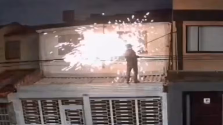 VIDEO: ladrón recibió descarga eléctrica al intentar robar cable de luz en una casa en Bogotá